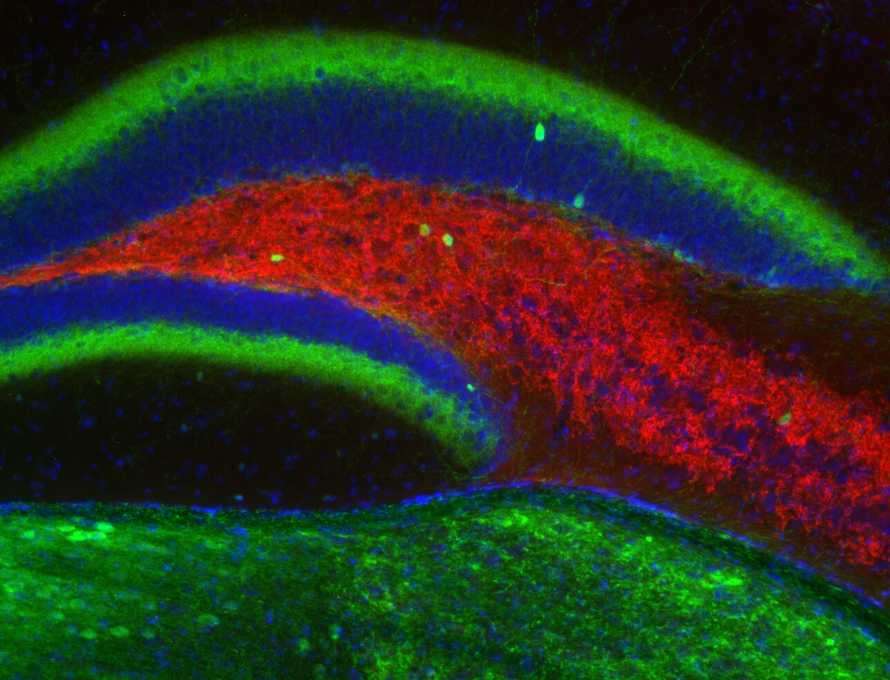 The distributions of synaptophysin1 and synaptoporin are different. Synaptophysin1 is more uniformly expressed whereas synaptoporin is particularly enriched in mossy fiber synapses in the hippocampus. It is thus an excellent marker for subsets of synapses.