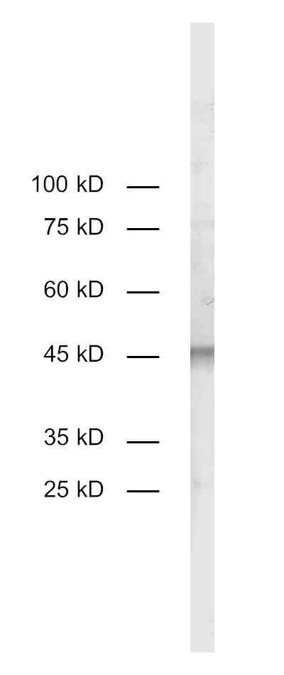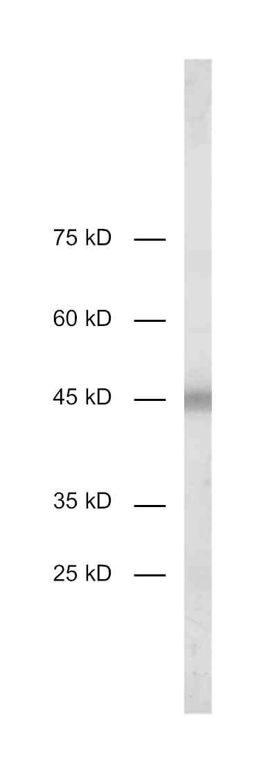 50 µg specific antibody, lyophilized. Affinity purified with the immunogen. Albumin and azide were added for stabilization. For reconstitution add 50 µl H2O to get a 1mg/ml solution in PBS. Then aliquot and store at -20°C to -80°C until use. Antibodies should be stored at +4°C when still lyophilized. Do not freeze! |