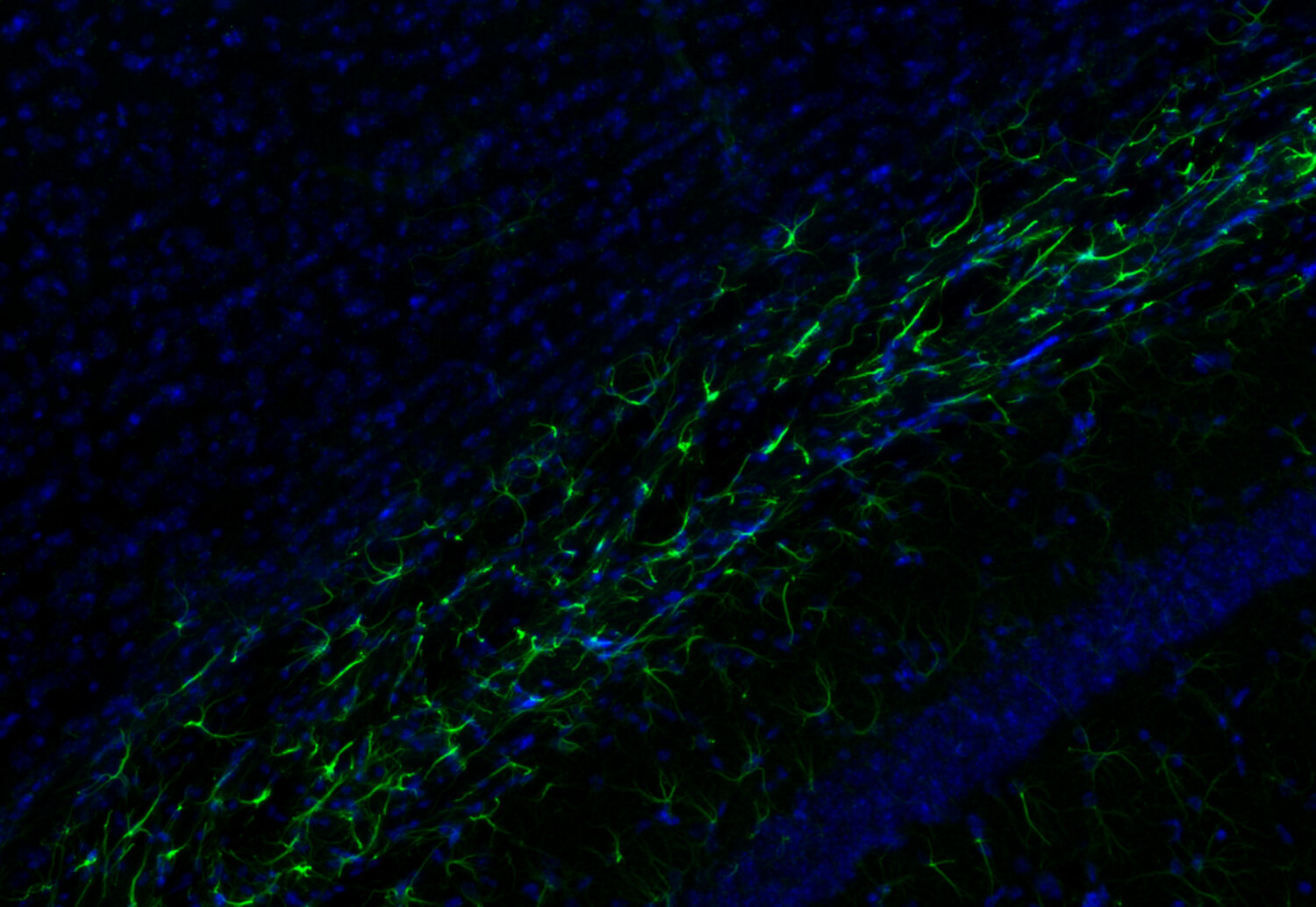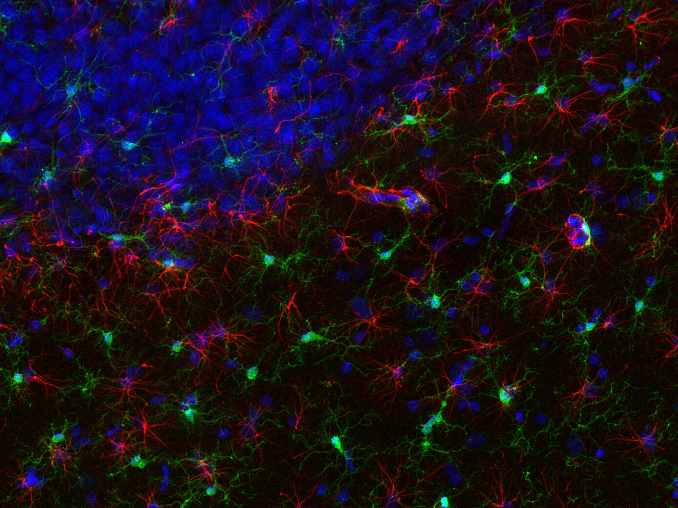 Frequently, neural stem cells also express GFAP. In addition many types of brain tumors, probably derived from astrocytic cells, heavily express GFAP. This protein is also found in the lens epithelium, Kupffer cells of the liver, in some cells in salivary tumors and others.