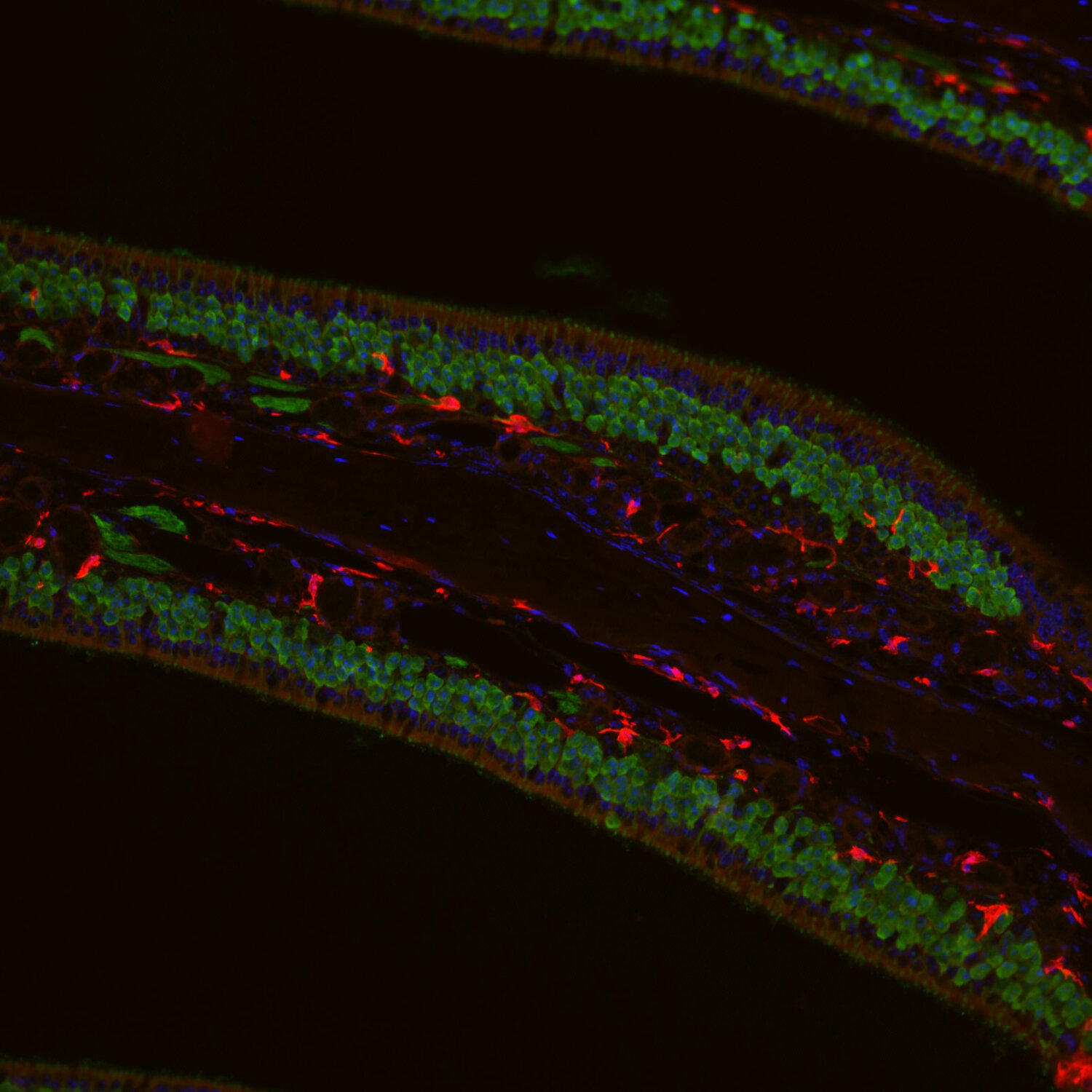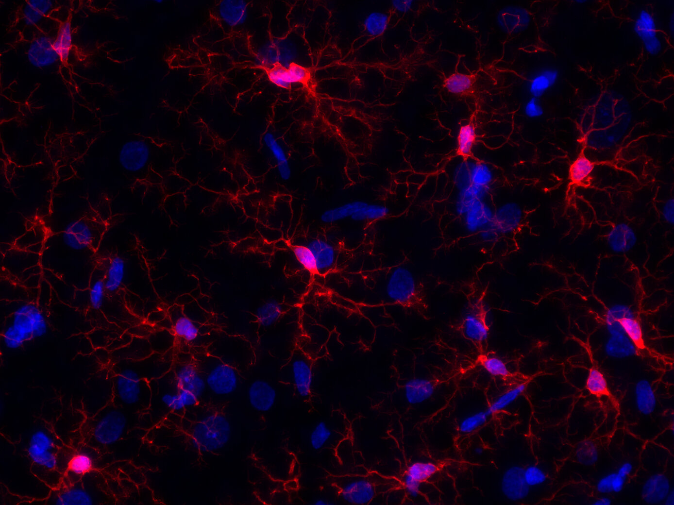 Microglia represent the resident macrophages in the nervous system and are the smallest of the glial cells with cell bodies of only 2-5 µm in diameter. In the CNS IBA1 upregulation is associated with neuroinflammatory response (3).