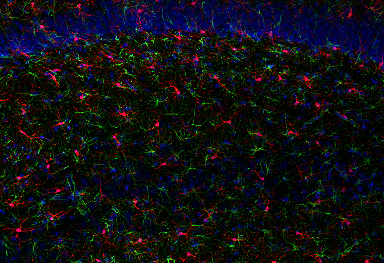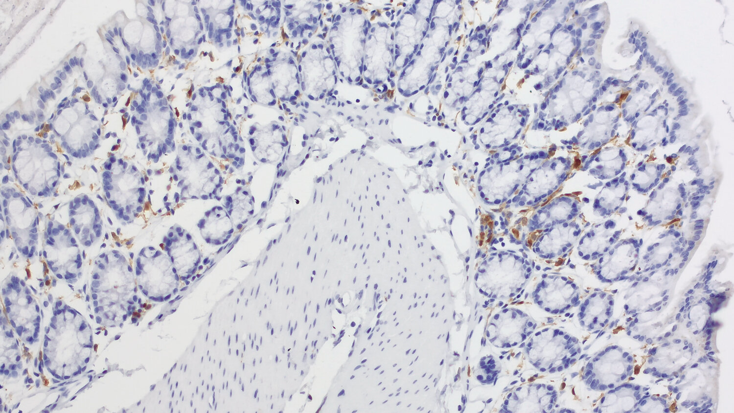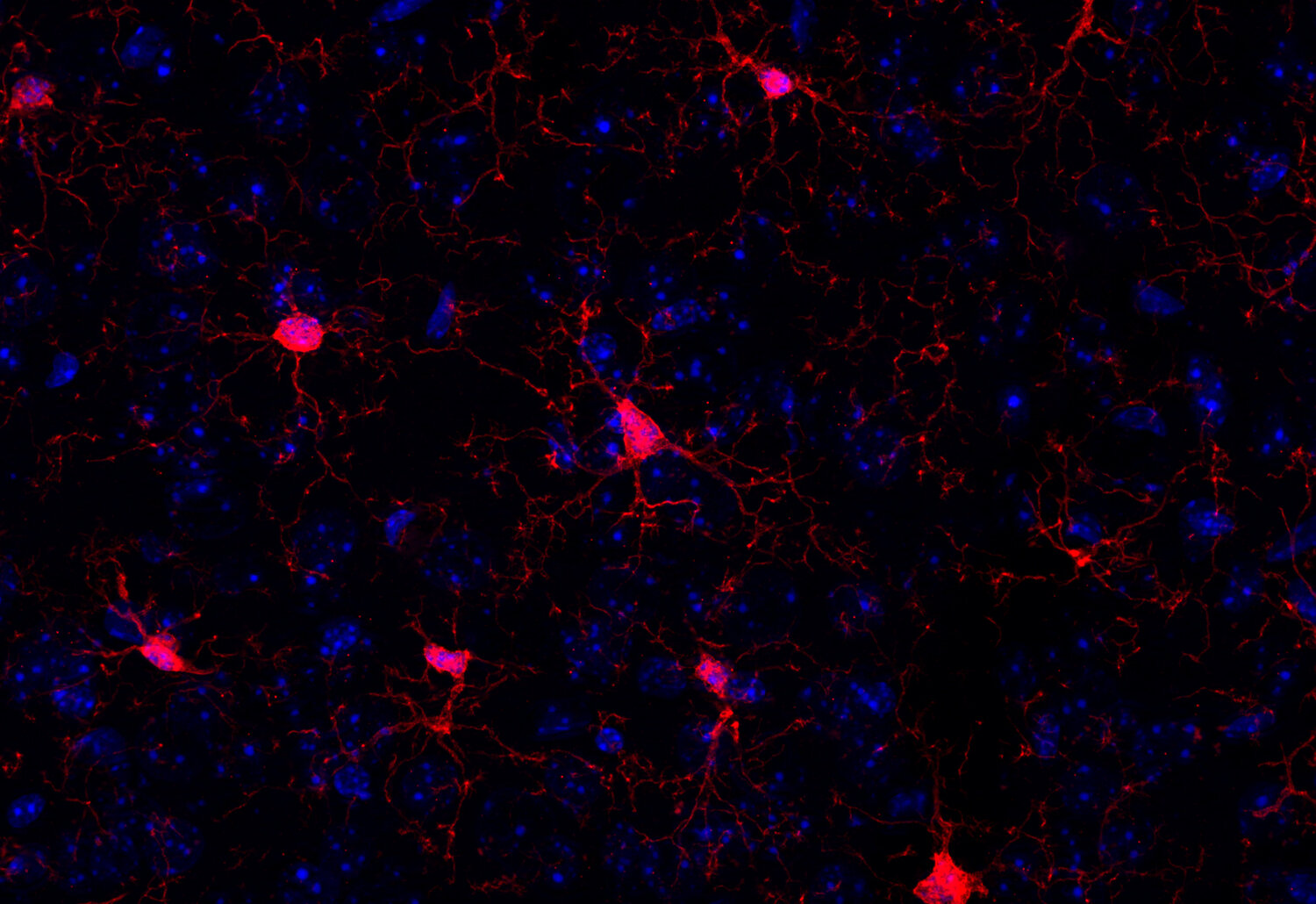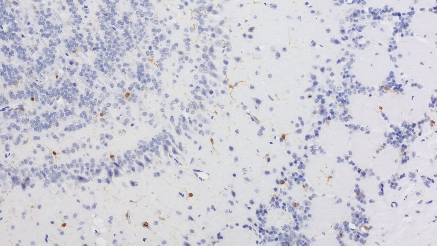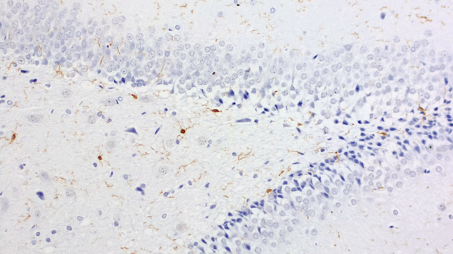 Microglia represent the resident macrophages in the nervous system and are the smallest of the glial cells with cell bodies of only 2-5 µm in diameter. In the CNS IBA1 upregulation is associated with neuroinflammatory response (3).