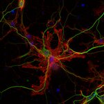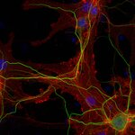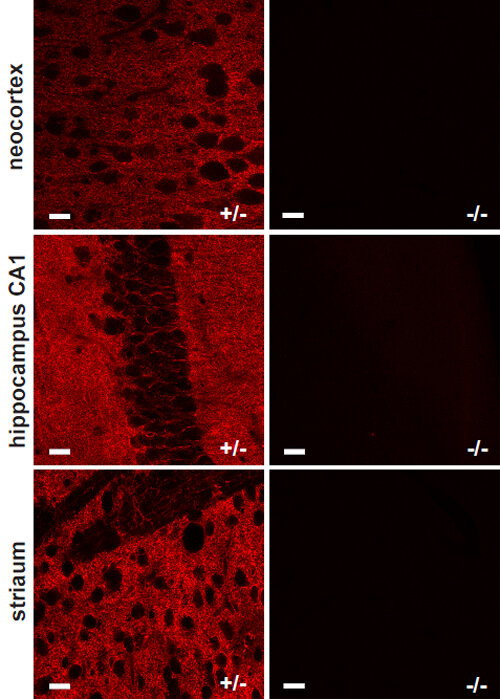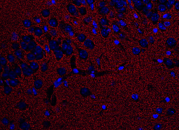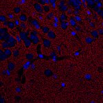 Five EAATs with differential expression patterns have been described so far: EAAT1, also referred to as GLAST and SLC1A3, has neuroprotective potential following ischemia and occurs in reactive astrocytes and activated microglia. EAAT2 (GLT-1, SLC1A2) is the most abundant isoform and is primarily expressed in astrocytes. Both variants show high levels in brain and retina. EAAT3 / SLC1A1, EAAT4 / SLC1A6 and EAAT5 / SLC1A7 are expressed in neurons (2). EAAT4 shows weak expression in the forebrain and high levels in the cerebellum, where it mainly locates to Purkinje cells (3). EAAT5 primarily occurs in the retina, where it locates very close to glutamate release sites. In K.O. mice flicker resolution is considerably compromised (4). Recent findings suggest that EAAT5 is an abundant isoform, expressed also in non-neuronal peripheral tissues (5).