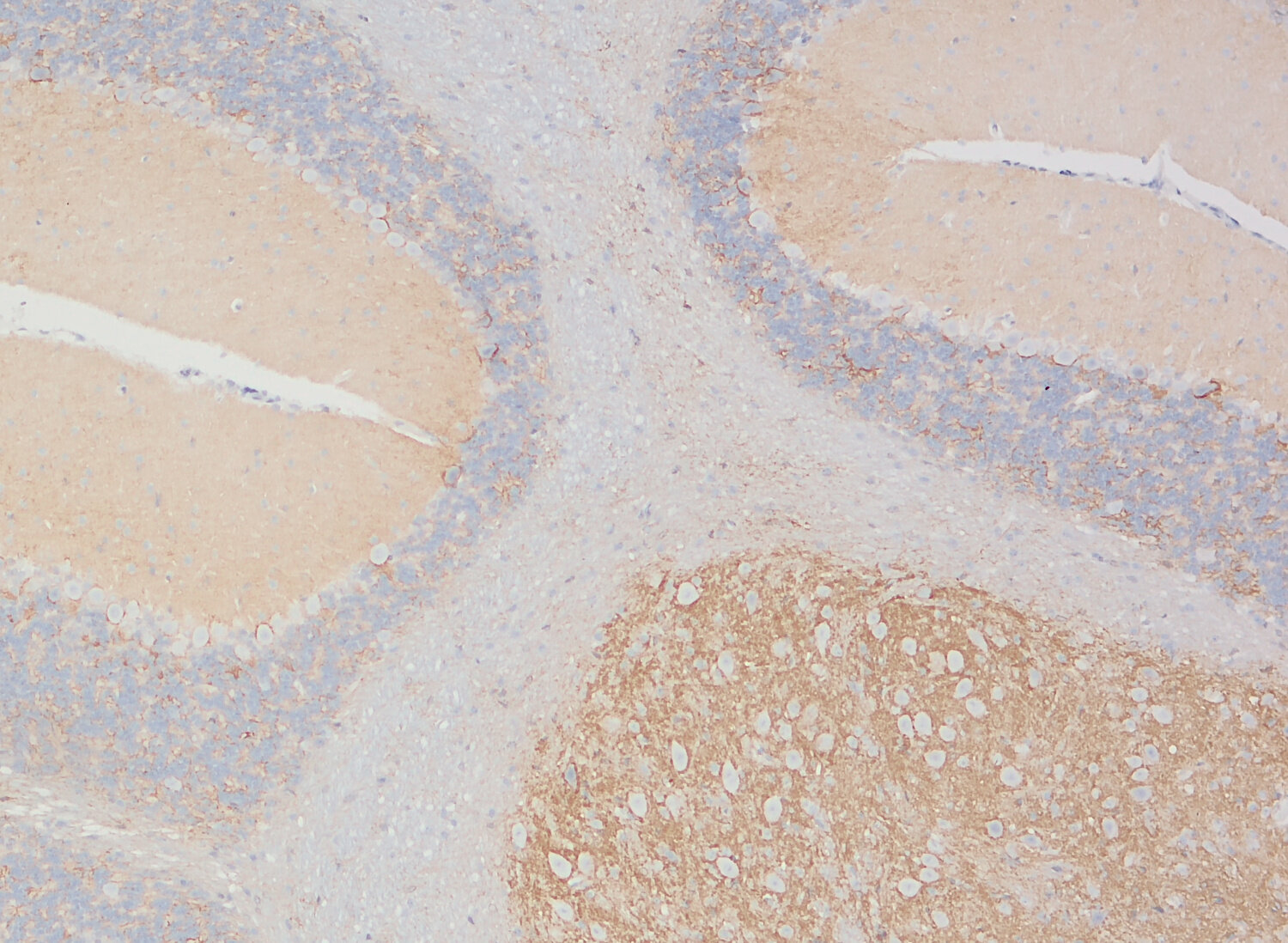 Five EAATs with differential expression patterns have been described so far: EAAT1, also referred to as GLAST and SLC1A3, has neuroprotective potential following ischemia and occurs in reactive astrocytes and activated microglia. EAAT2 (GLT-1, SLC1A2) is the most abundant isoform and is primarily expressed in astrocytes. Both variants show high levels in brain and retina. EAAT3 / SLC1A1, EAAT4 / SLC1A6 and EAAT5 / SLC1A7 are expressed in neurons (2). EAAT4 shows weak expression in the forebrain and high levels in the cerebellum, where it mainly locates to Purkinje cells (3). EAAT5 primarily occurs in the retina, where it locates very close to glutamate release sites. In K.O. mice flicker resolution is considerably compromised (4). Recent findings suggest that EAAT5 is an abundant isoform, expressed also in non-neuronal peripheral tissues (5).