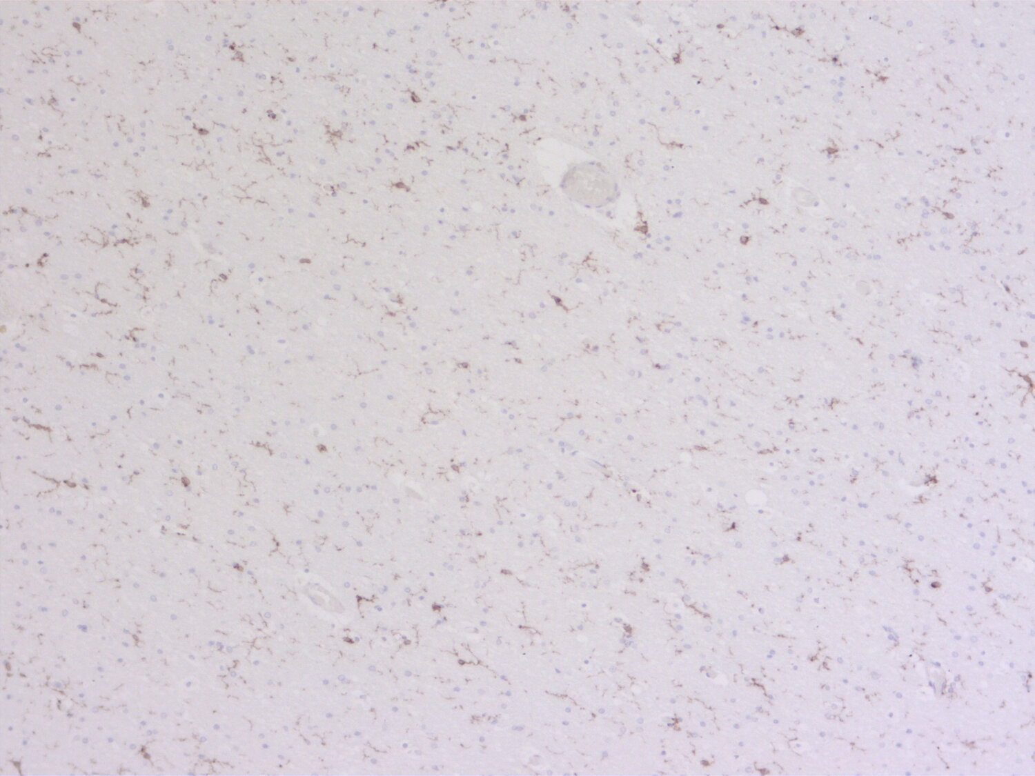 Microglia are resident myeloid cells of the central nervous system (CNS). They are ontogenetically and functionally distinct from monocyte-derived macrophages that infiltrate the CNS under pathological conditions. Transmembrane protein 119 (TMEM119) is a single-pass type I membrane protein that has been identified as a useful, highly selective microglia marker protein.