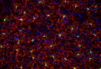 Microglia are resident myeloid cells of the central nervous system (CNS). They are ontogenetically and functionally distinct from monocyte-derived macrophages that infiltrate the CNS under pathological conditions. Transmembrane protein 119 (TMEM119) is a single-pass type I membrane protein that has been identified as a useful, highly selective microglia marker protein.