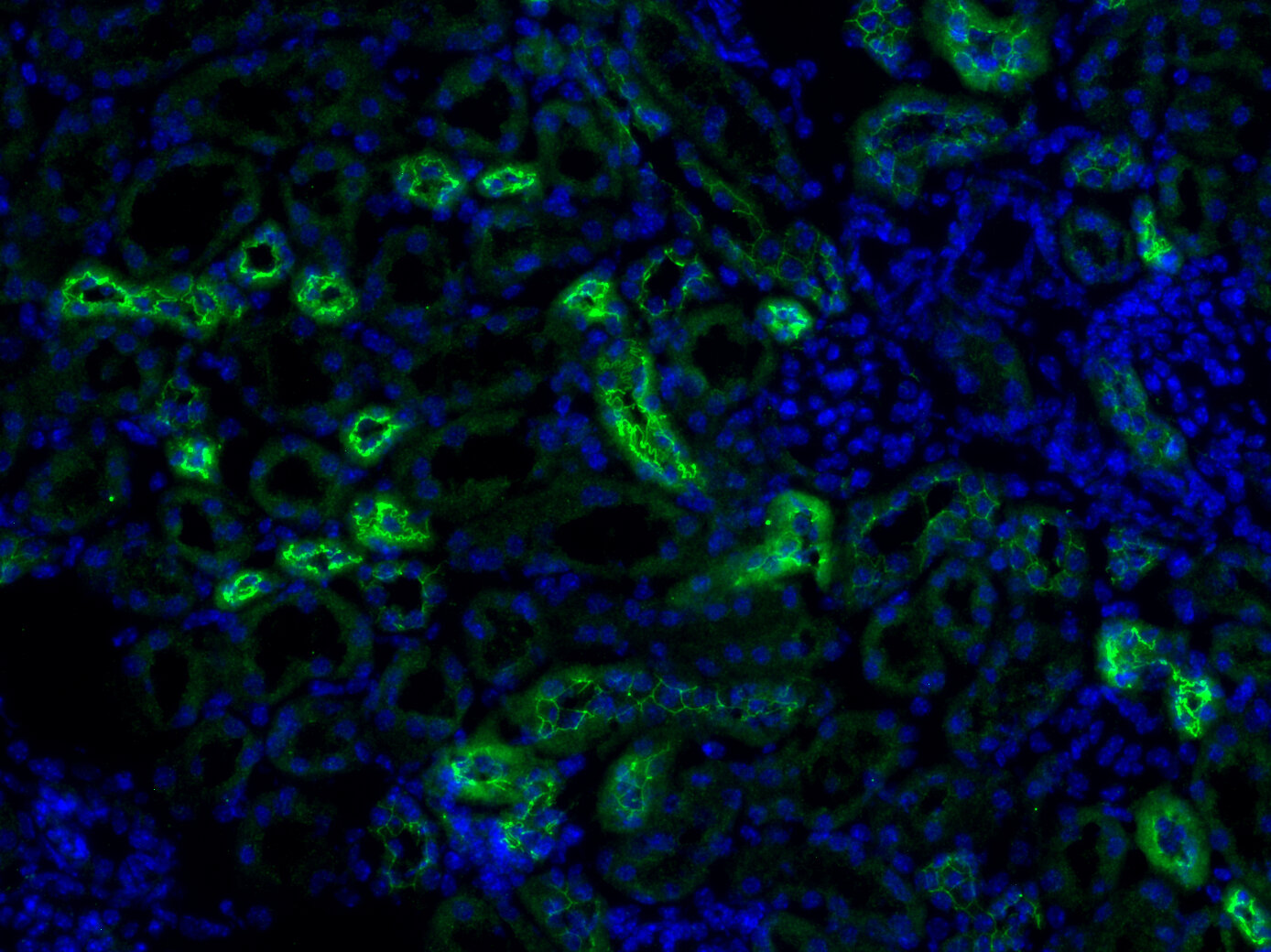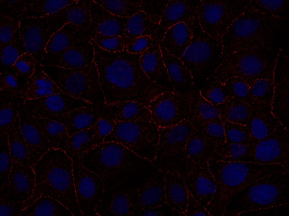 Occludin, a 65-kDa tetraspan integral membrane protein, plays a role in the formation and regulation of the tight junction paracellular permeability barrier. The C-terminal is cytoplasmic and is important for interaction with ZO-1, which links the protein complex to the actin cytoskeleton. Occludin is localized at tight junctions of both epithelial and endothelial cells. (1) It is highly expressed in the testis, kidney, lung, liver and brain. Expression of occludin is required for the infection of liver cells by the hepatitis C virus (HCV). (2)