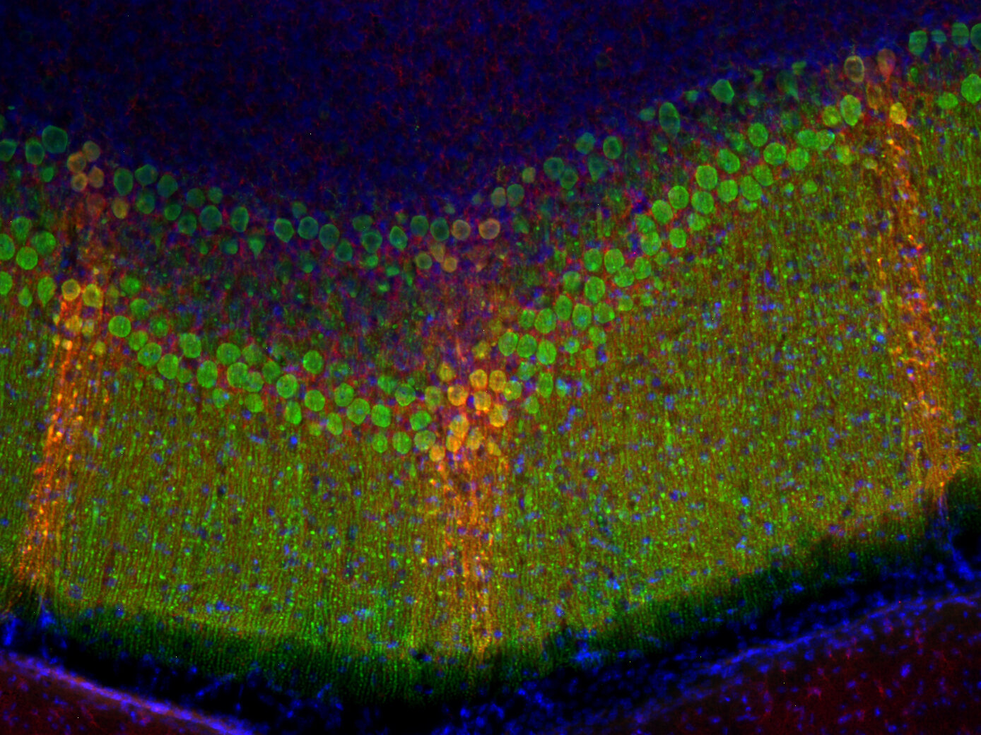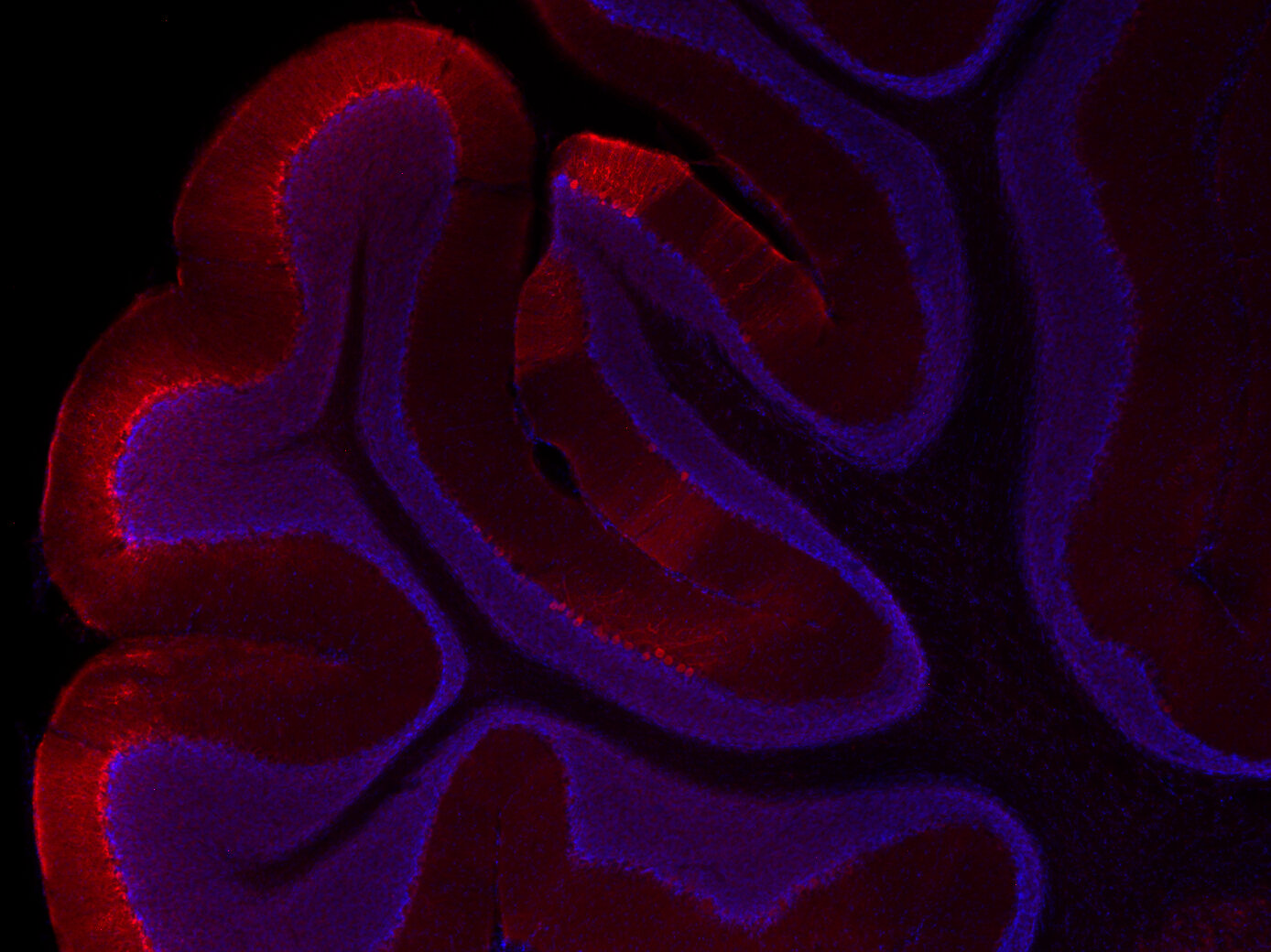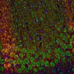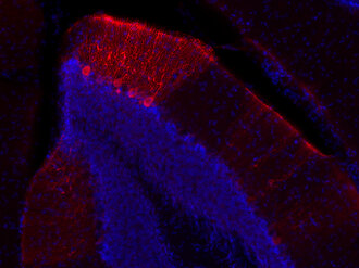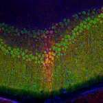 Aldolase C-positive Purkinje cells are organized in the cerebellum as stripes or bands that run from anterior to posterior across the cerebellum and alternate with bands of Aldolase C-negative Purkinje cells (2). Aldolase C is also expressed in astrocytes (3)