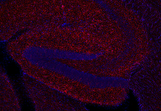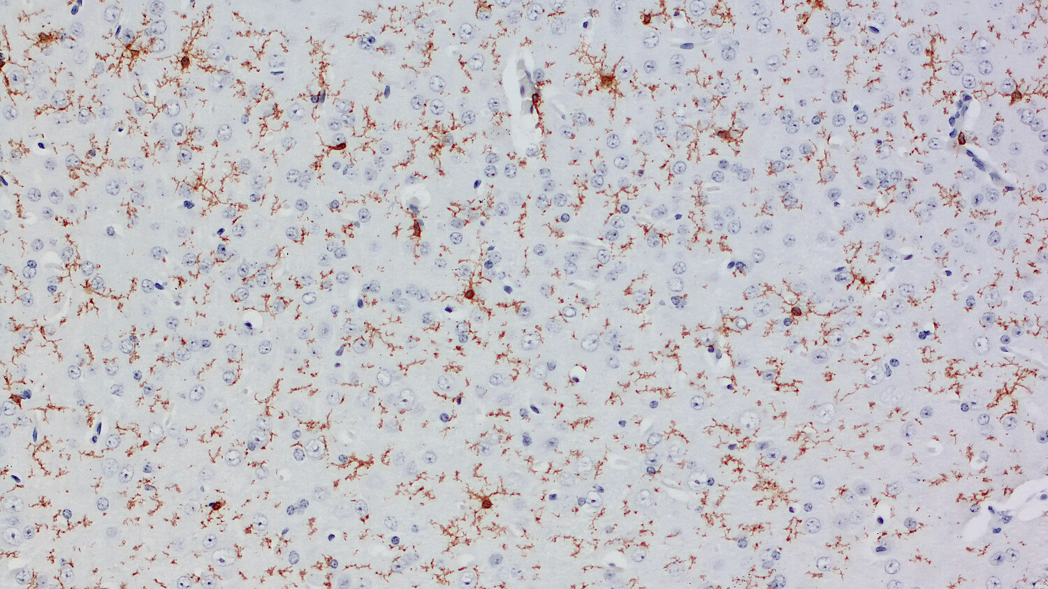 P2Y12 receptor (P2RY12) is a Gi – coupled purinoceptor and is of particular relevance for microglia in the central nervous system (CNS) (1). The preferred agonist is ADP, the degradation product of ATP, which is released from neurons and other glial cells during physiological activity or after tissue damage. P2Y12 receptor is highly expressed in processes and somata of surveilling microglia and plays a major role in microglial chemotaxis in response to local CNS injury (2). More recently, P2Y12 receptors have been shown to be concentrated at microglia process-neuronal somata contacts (3) and to be critical for neuroprotection. To date, P2Y12 receptor is one of the most accepted microglia-specific markers used to distinguish CNS-resident microglia from CNS-associated macrophages (CAMs) and infiltrating monocytes/macrophages (4). The expression level of P2Y12 receptor is downregulated in an activated state of microglia referred to as disease-associated microglia (DAM). In the periphery, P2Y12 receptor is expressed in platelets and is a well-known biological target for anti-thrombotic drugs due to its central role in platelet activation, aggregation and blood clotting (5).