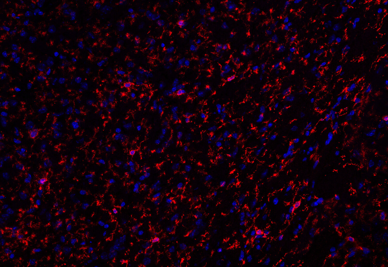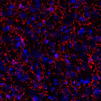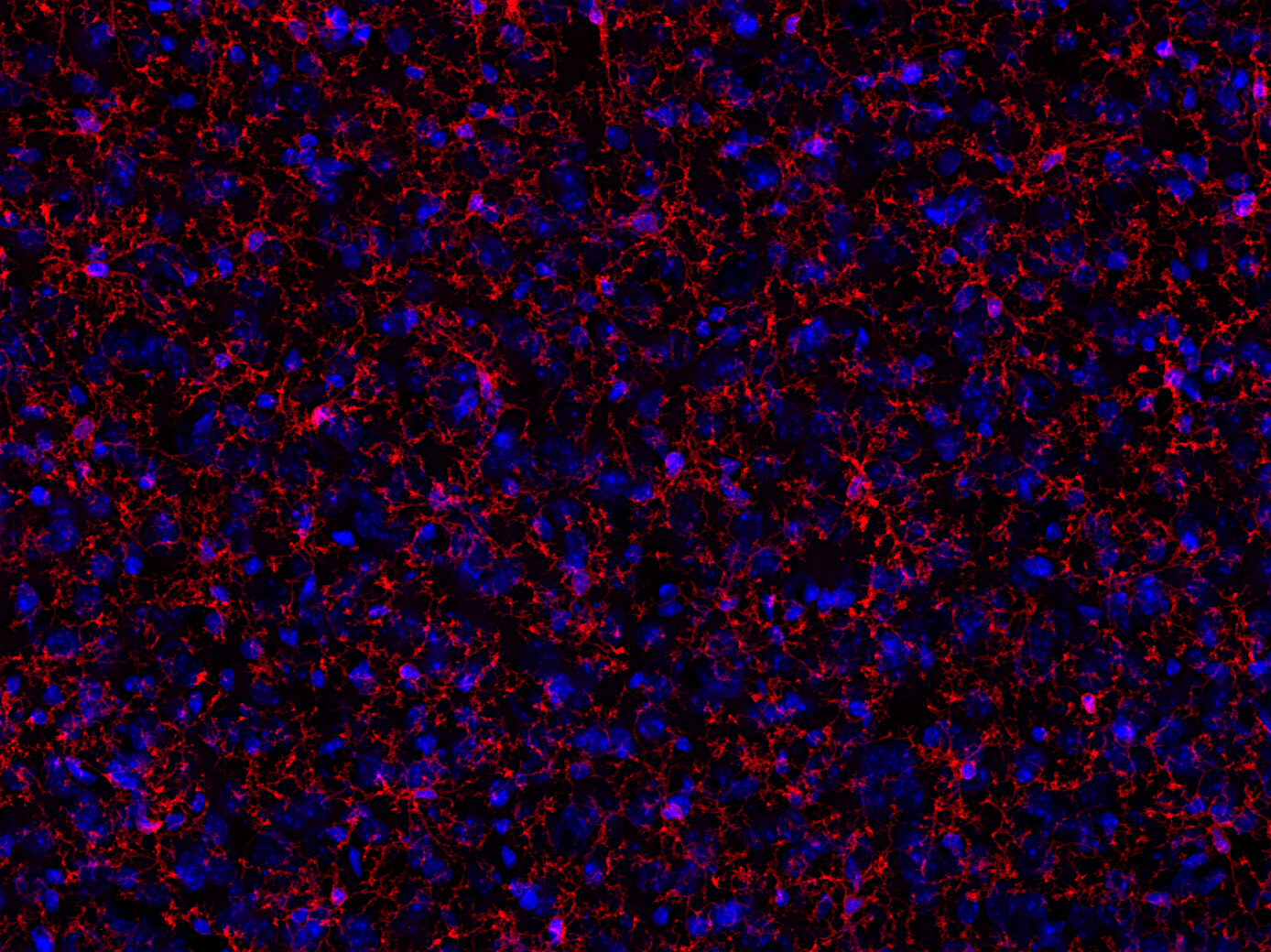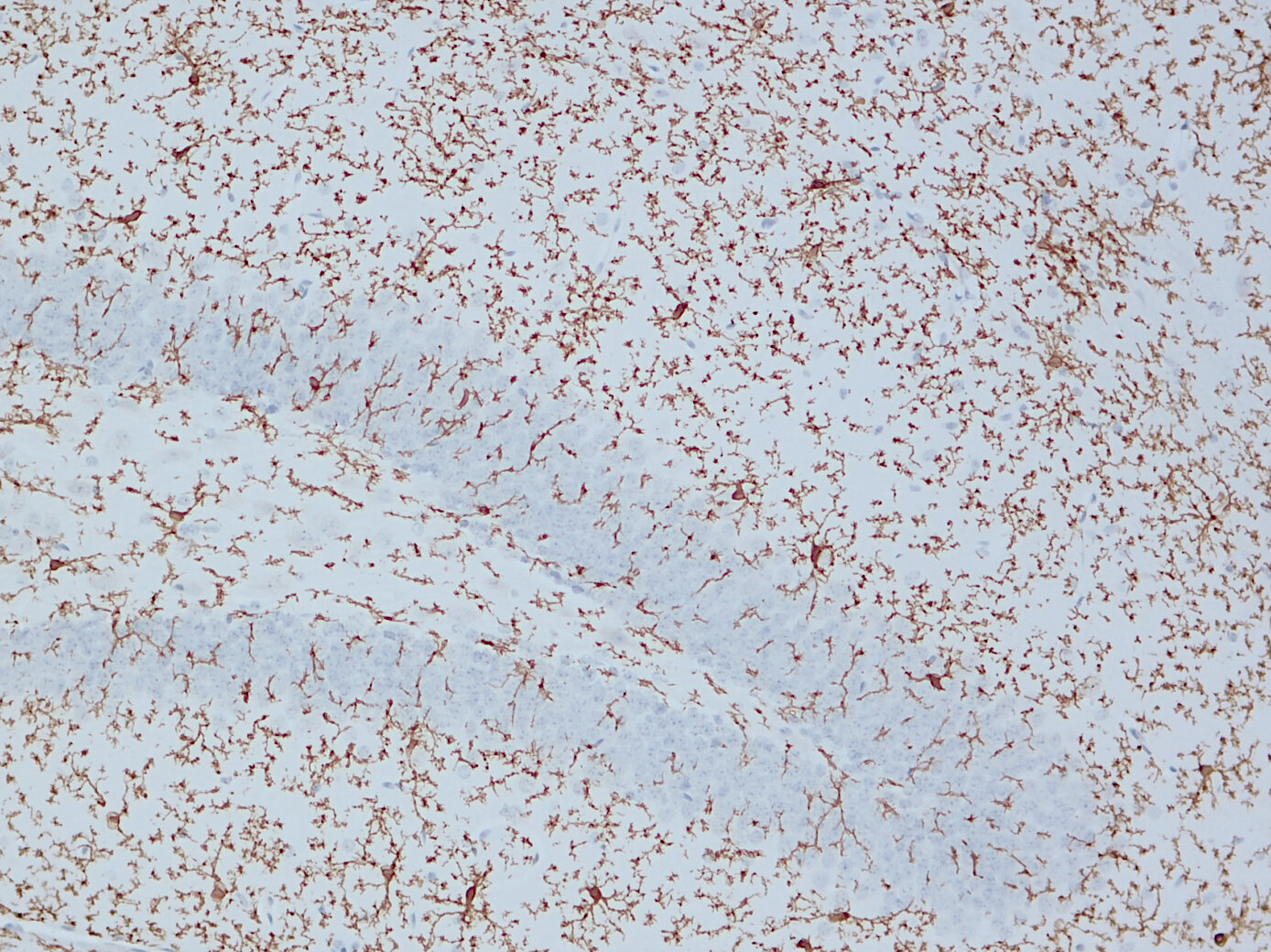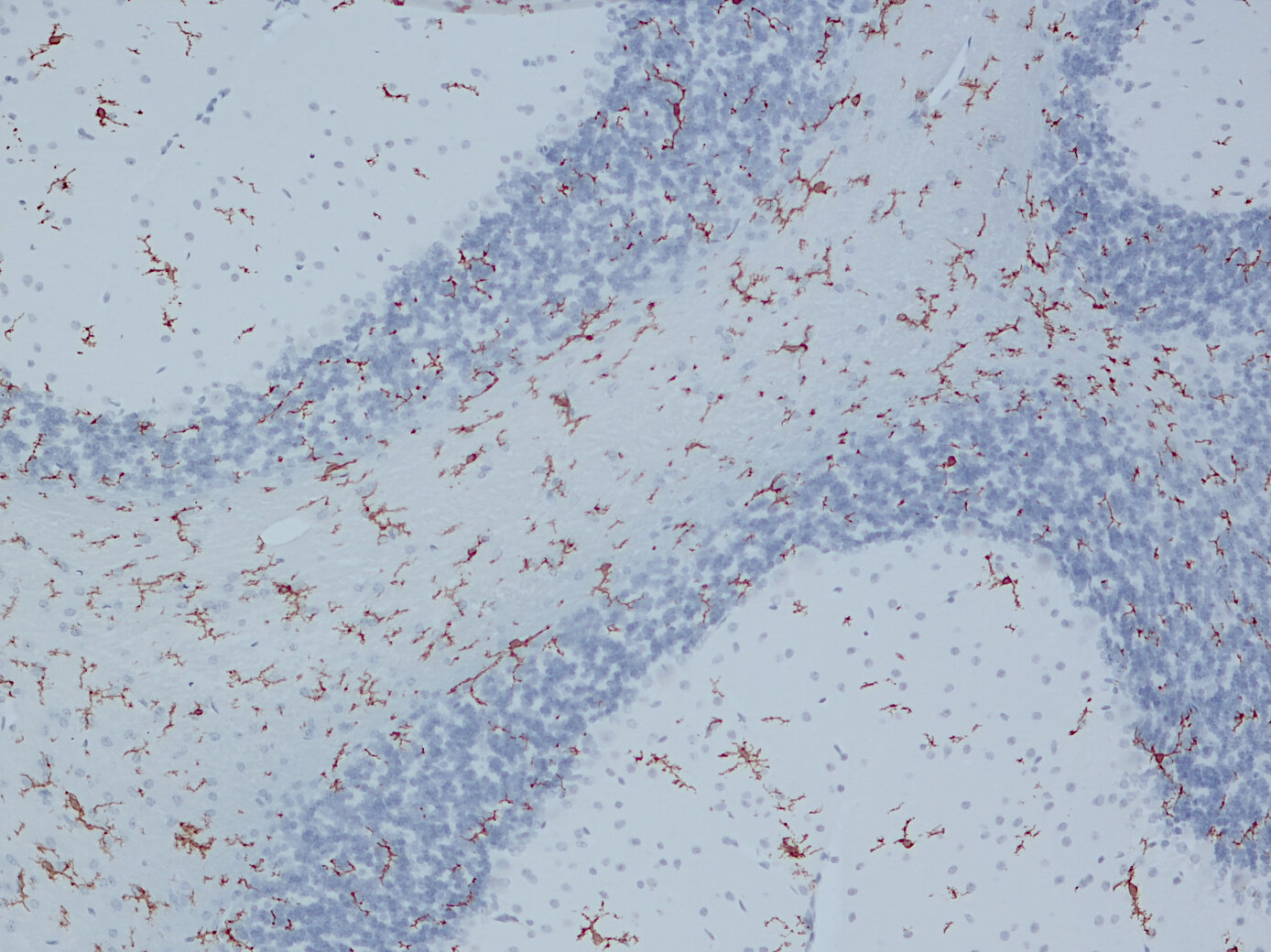 P2Y12 receptor (P2RY12) is a Gi – coupled purinoceptor and is of particular relevance for microglia in the central nervous system (CNS) (1). The preferred agonist is ADP, the degradation product of ATP, which is released from neurons and other glial cells during physiological activity or after tissue damage. P2Y12 receptor is highly expressed in processes and somata of surveilling microglia and plays a major role in microglial chemotaxis in response to local CNS injury (2). More recently, P2Y12 receptors have been shown to be concentrated at microglia process-neuronal somata contacts (3) and to be critical for neuroprotection. To date, P2Y12 receptor is one of the most accepted microglia-specific markers used to distinguish CNS-resident microglia from CNS-associated macrophages (CAMs) and infiltrating monocytes/macrophages (4). The expression level of P2Y12 receptor is downregulated in an activated state of microglia referred to as disease-associated microglia (DAM). In the periphery, P2Y12 receptor is expressed in platelets and is a well-known biological target for anti-thrombotic drugs due to its central role in platelet activation, aggregation and blood clotting (5).