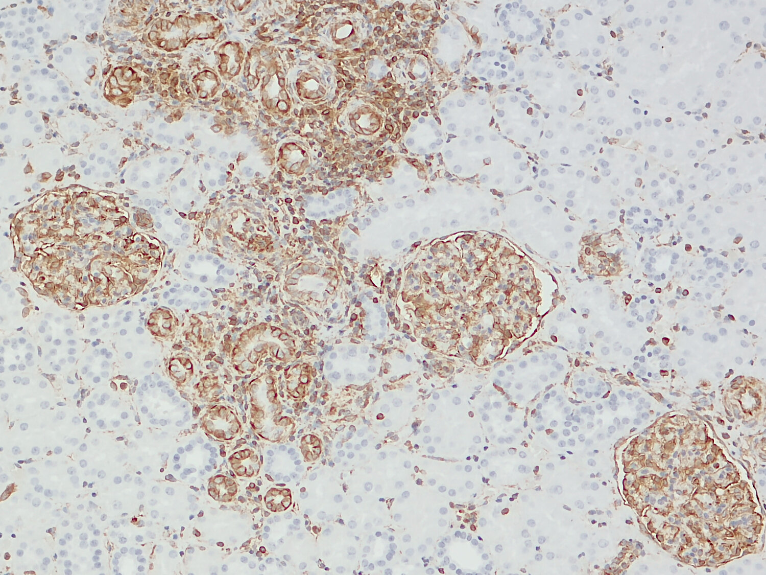 Immunohistochemistry (IHC-P) of formalin fixed, paraffin embedded (FFPE) tissue (some antibodies require special antigen retrieval steps, please refer to the ”Remarks” section). Immunoreactivity is usually revealed by fluorescence or a chromogenic substrate.