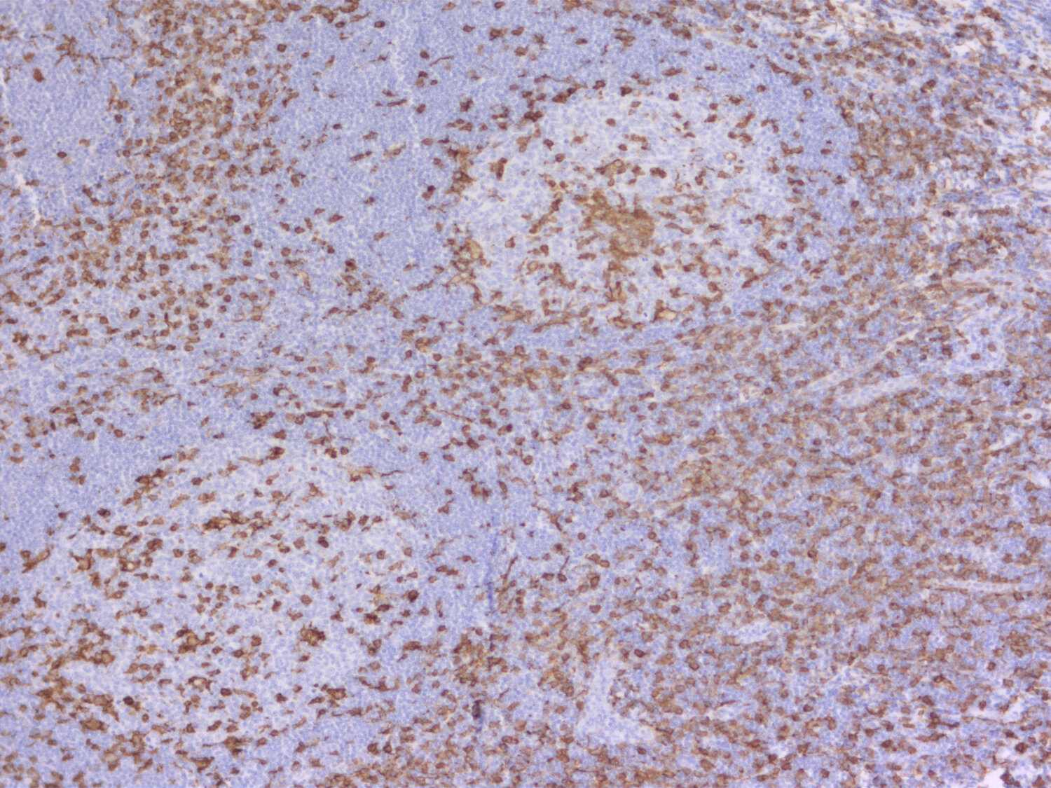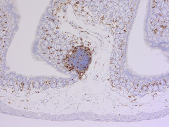 Staining of mouse colon section with rabbit monoclonal anti-IBA1