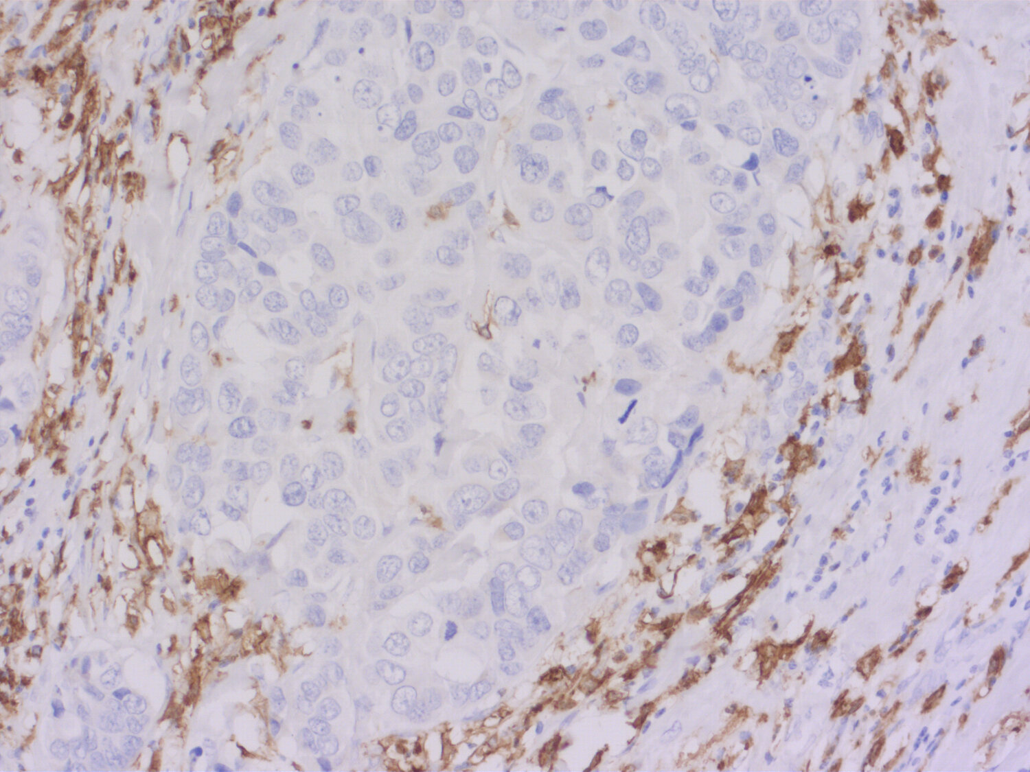 Ionized calcium-binding adaptor molecule 1 (IBA1) or allograft inflammatory factor1 (AIF-1) is an EF hand calcium binding protein which is expressed by cells of the monocyte/macrophage lineage and by germ cells in the testis (1). In mice, IBA1/AIF-1 can be regarded a “pan-macrophage marker” because, except for alveolar macrophages, all subpopulations of macrophages express IBA1/AIF-1 (1). In human gliomas IBA1 defines a distinct subset of tumor-associated activated macrophages/microglial cells (2).