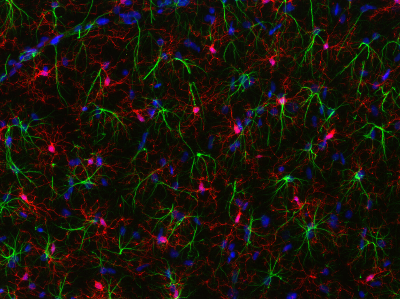 Microglia represent the resident macrophages in the nervous system and are the smallest of the glial cells with cell bodies of only 2-5 µm in diameter. In the CNS IBA1 upregulation is associated with neuroinflammatory response (3).