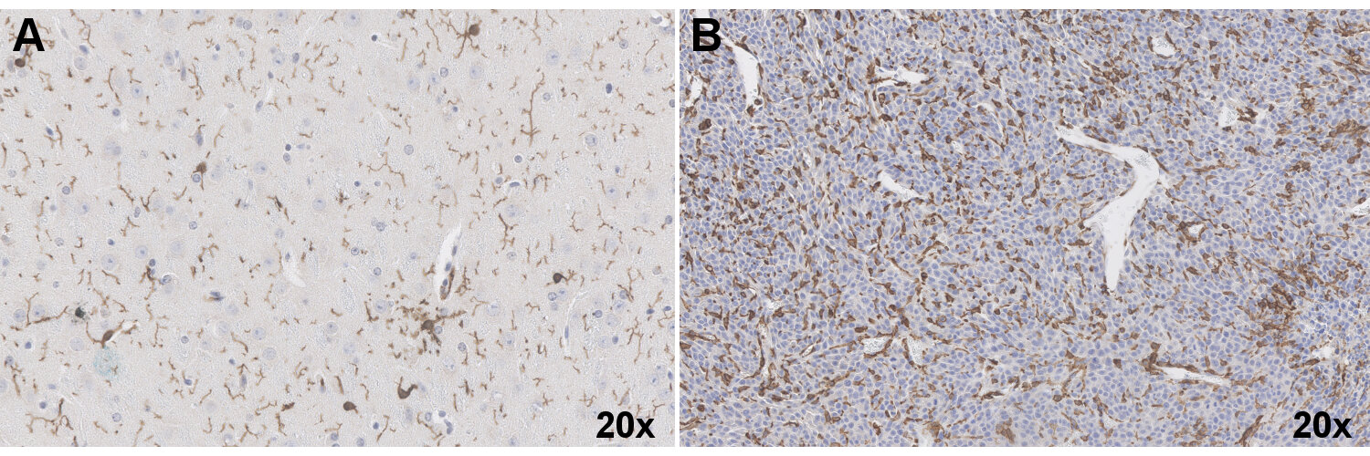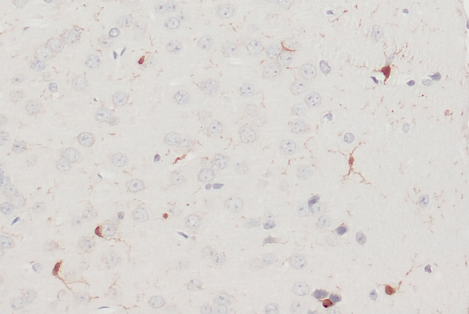 Microglia represent the resident macrophages in the nervous system and are the smallest of the glial cells with cell bodies of only 2-5 µm in diameter. In the CNS IBA1 upregulation is associated with neuroinflammatory response (3).