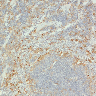 Staining of murine spleen section with biotinylated rat anti-IBA1