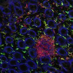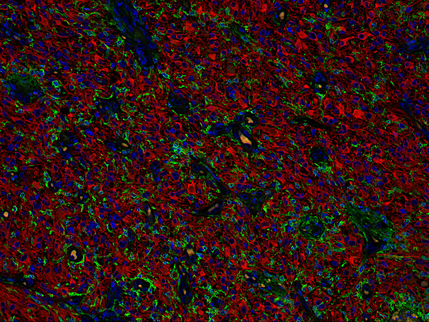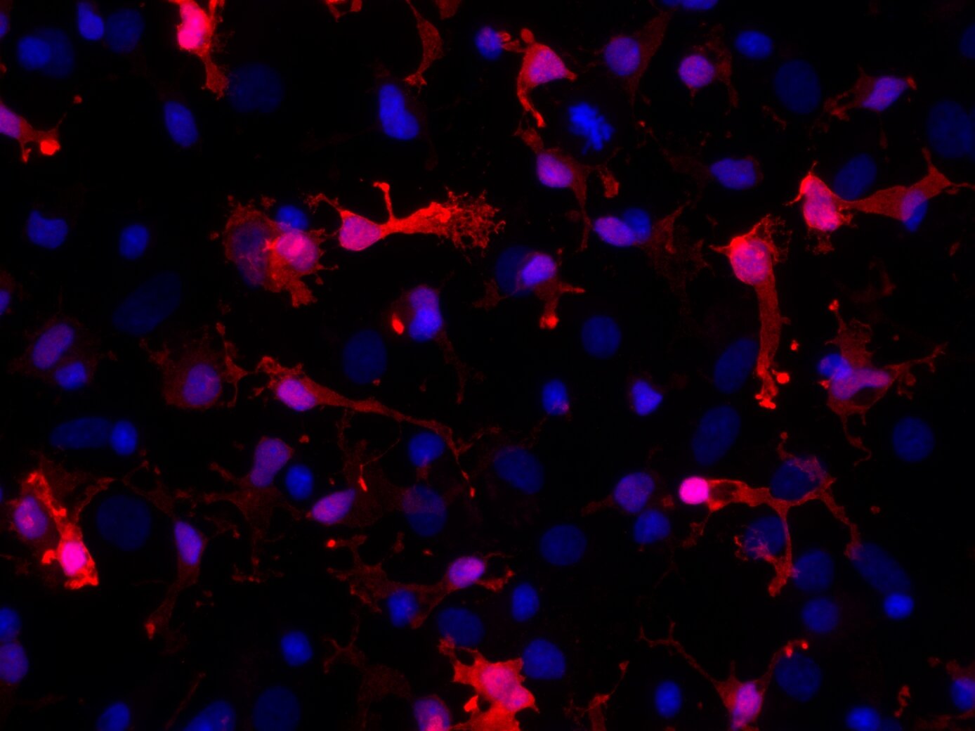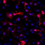 Microglia represent the resident macrophages in the nervous system and are the smallest of the glial cells with cell bodies of only 2-5 µm in diameter. In the CNS IBA1 upregulation is associated with neuroinflammatory response (3).