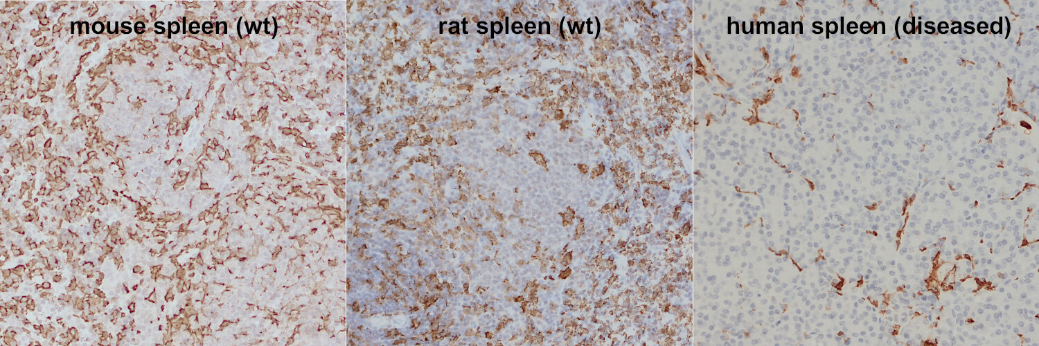 Ionized calcium-binding adaptor molecule 1 (IBA1) or allograft inflammatory factor1 (AIF-1) is an EF hand calcium binding protein which is expressed by cells of the monocyte/macrophage lineage and by germ cells in the testis (1). In mice, IBA1/AIF-1 can be regarded a “pan-macrophage marker” because, except for alveolar macrophages, all subpopulations of macrophages express IBA1/AIF-1 (1). In human gliomas IBA1 defines a distinct subset of tumor-associated activated macrophages/microglial cells (2).