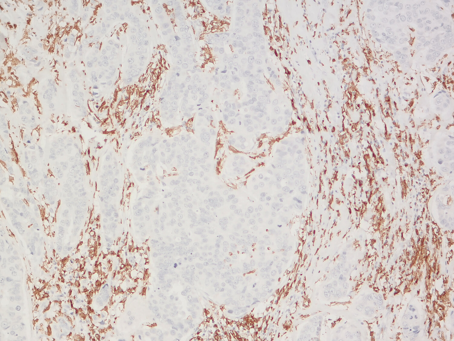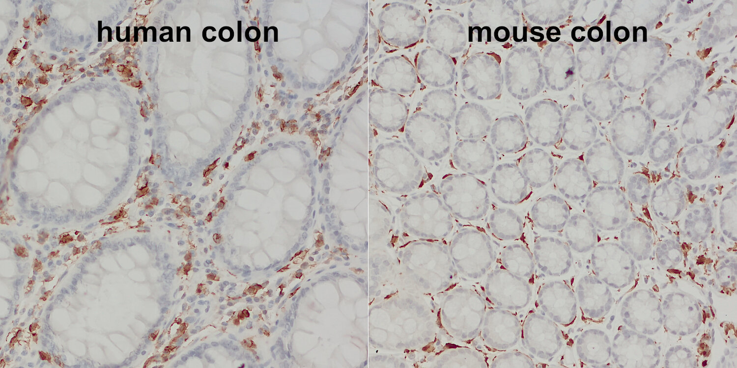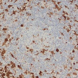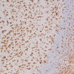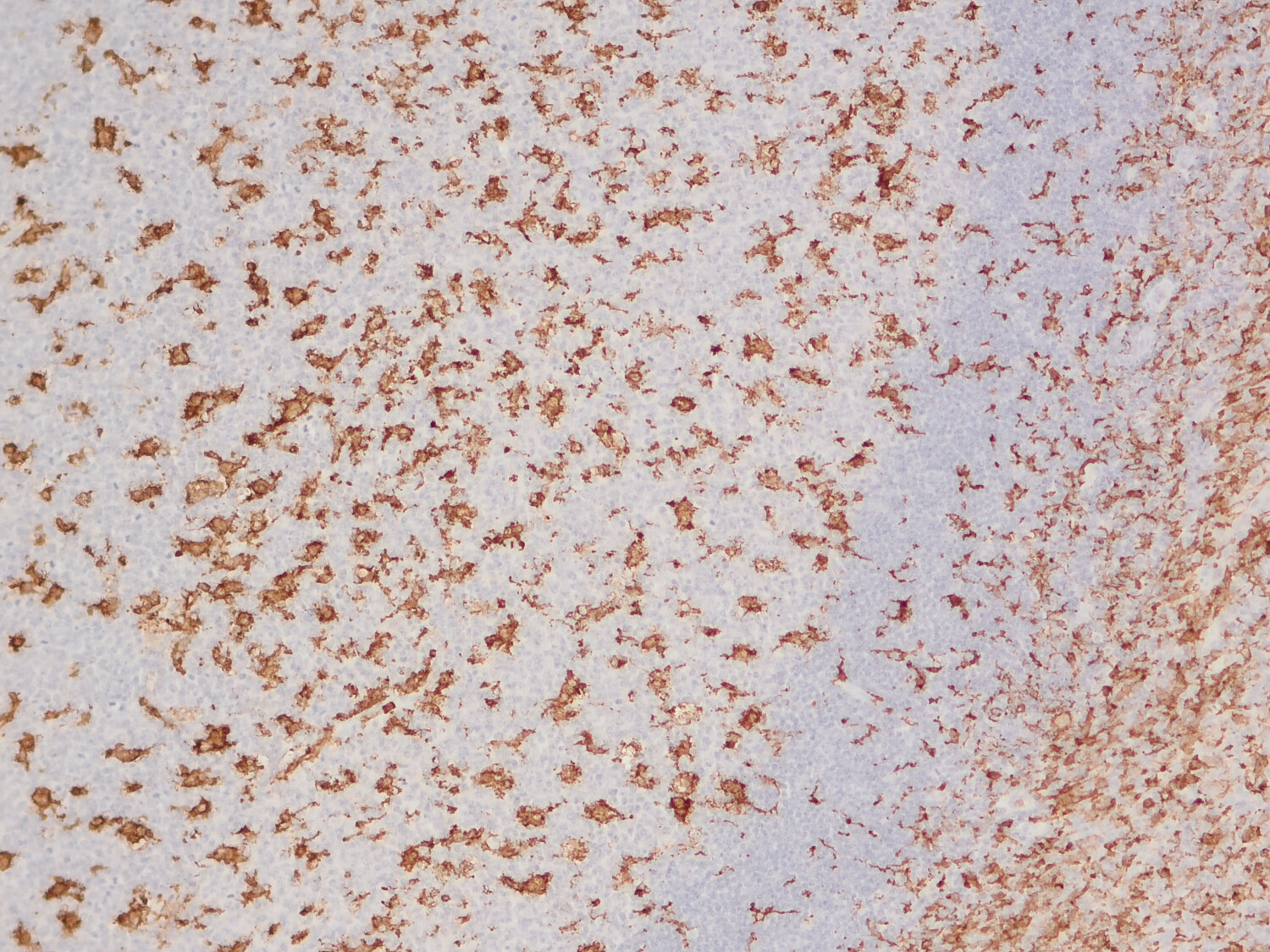 Detection of macrophages in human lymph node metastasis section with Guinea pig monoclonal anti-IBA1