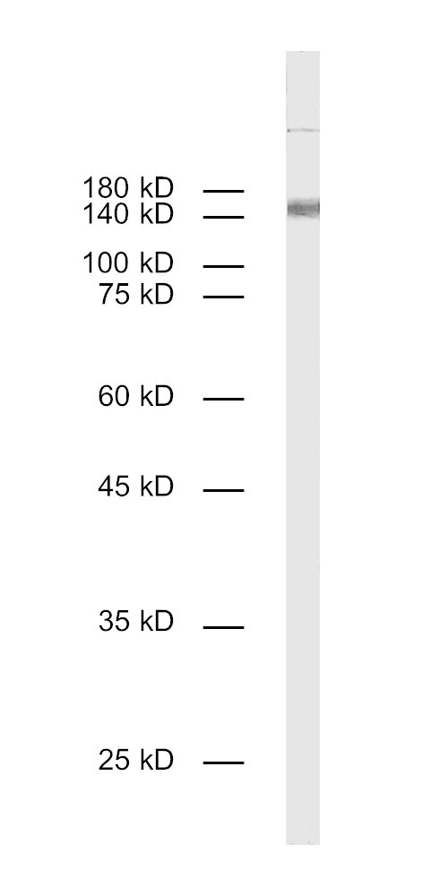 This antibody is a chimeric antibody based on the monoclonal rat antibody SY-53A2. The constant regions of the heavy and light chains have been replaced by rabbit specific sequences. The antibody can therefore be used with standard anti-rabbit secondary reagents. The antibody has been expressed in mammalian cells. |