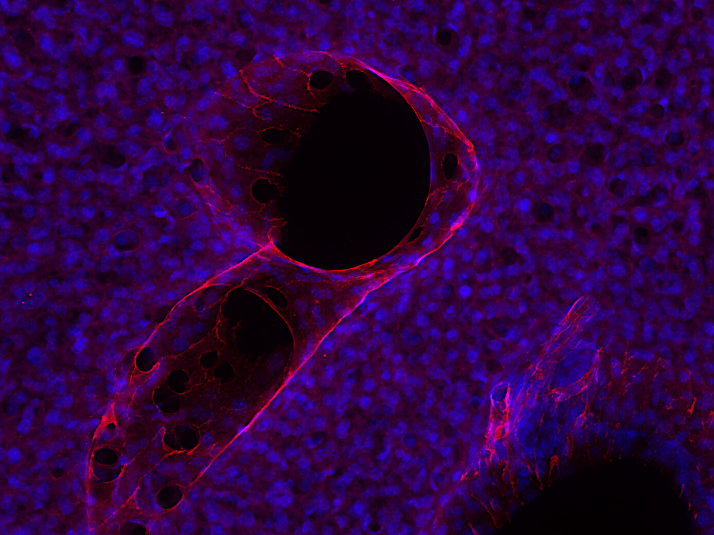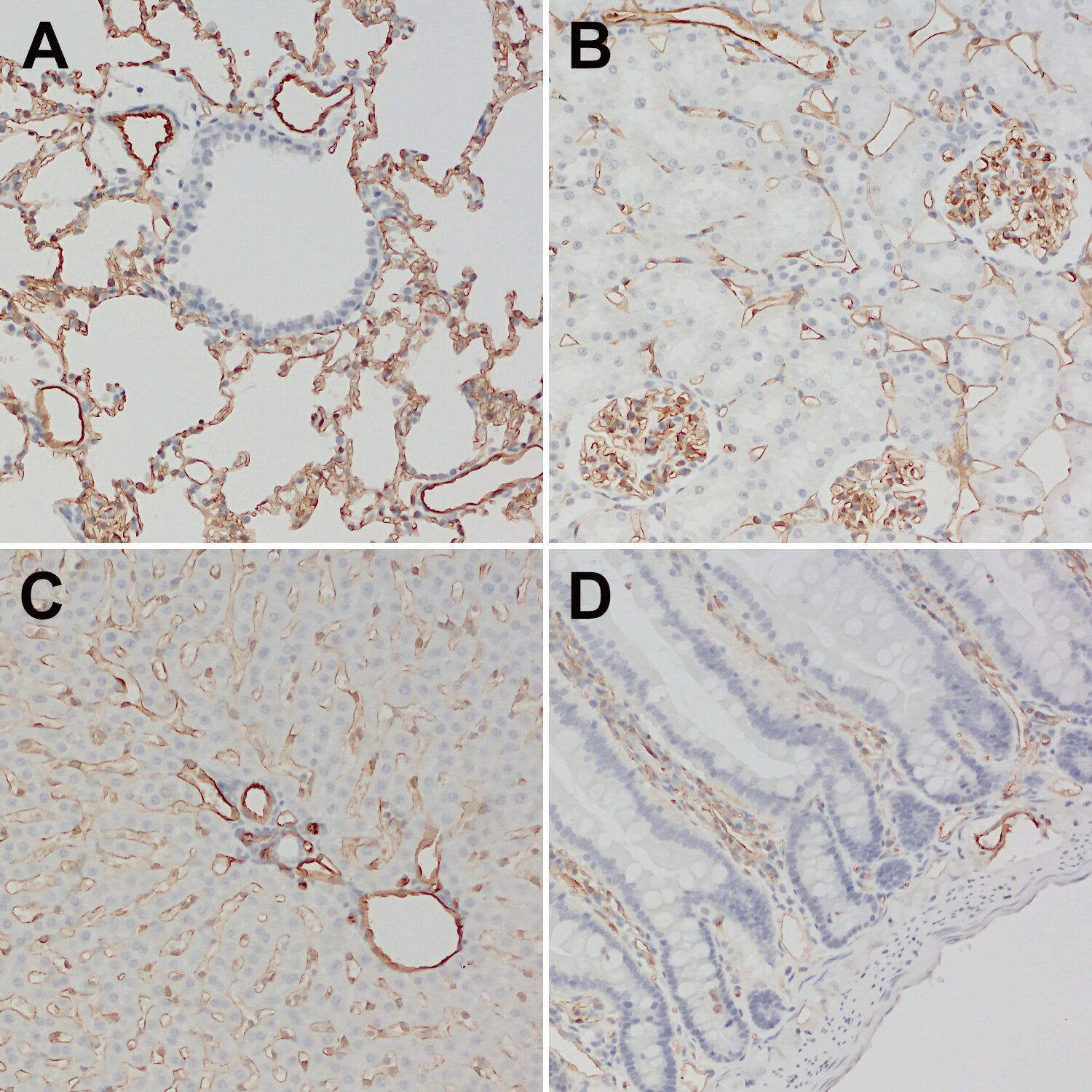 CD31 visualizes blood vessels in mouse small intestine