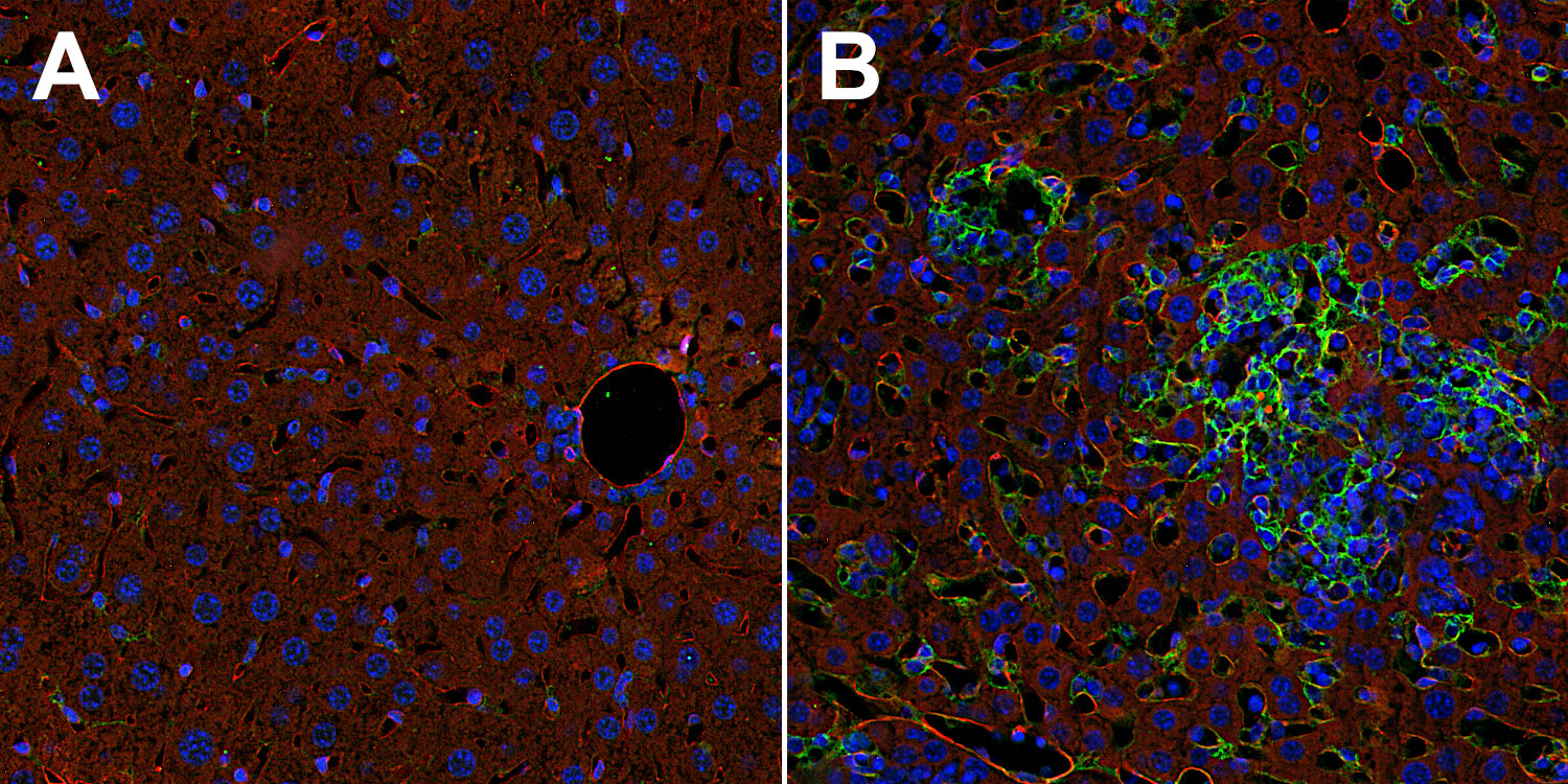IHC: Antigen retrieval with citrate buffer pH 6 can be applied to improve the signal to noise ratio. |