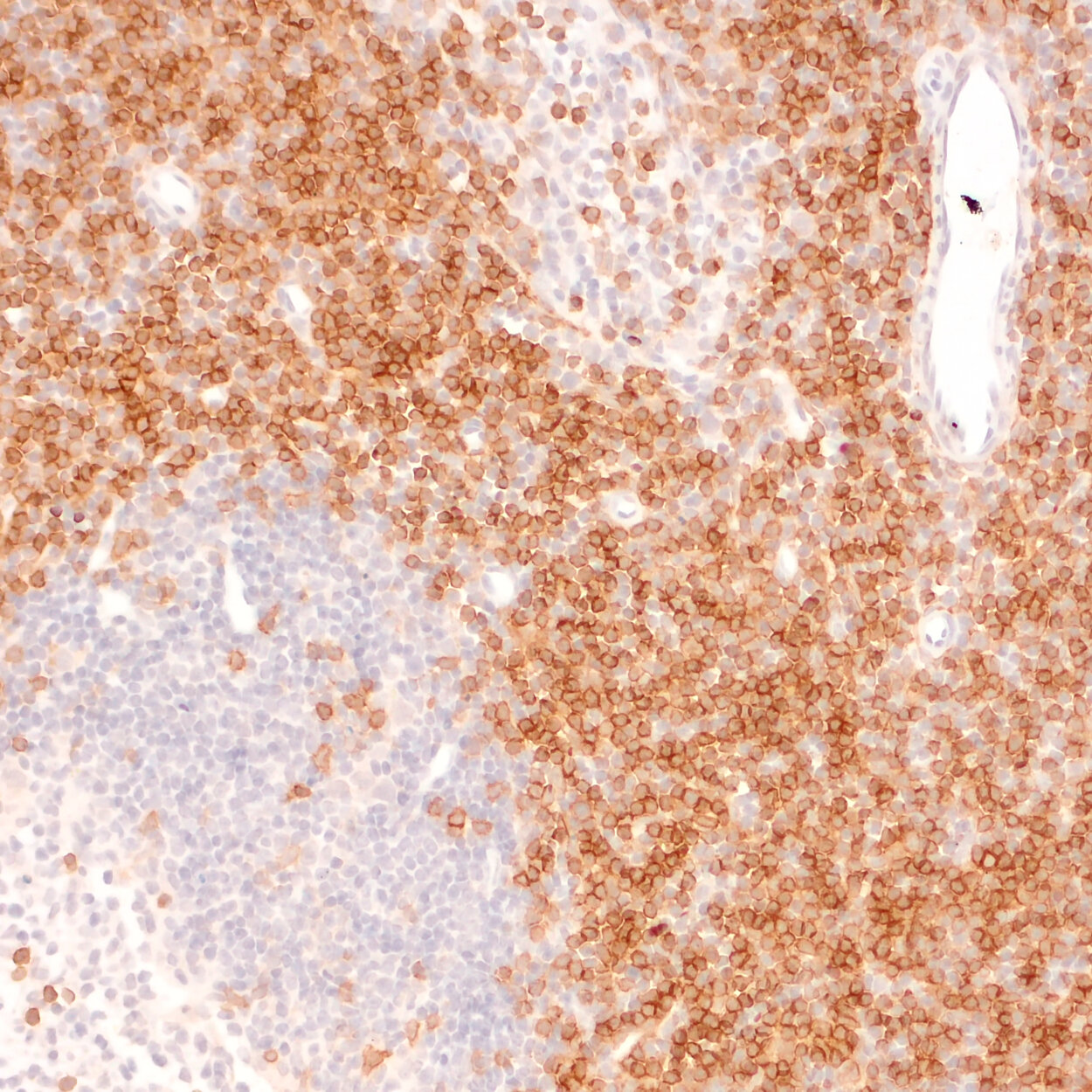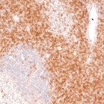 Staining of murine spleen section with biotinylated rat anti-CD4