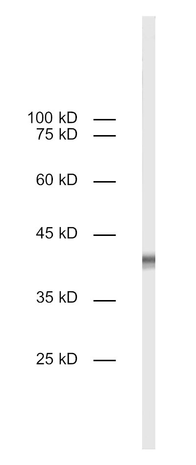 This antibody is a chimeric antibody based on the monoclonal rat antibody clone GHH8/32. The constant regions of the heavy and light chains have been replaced by rabbit specific sequences. Therefore, the antibody can be used with standard anti-rabbit secondary reagents. The antibody has been expressed in mammalian cells. |
