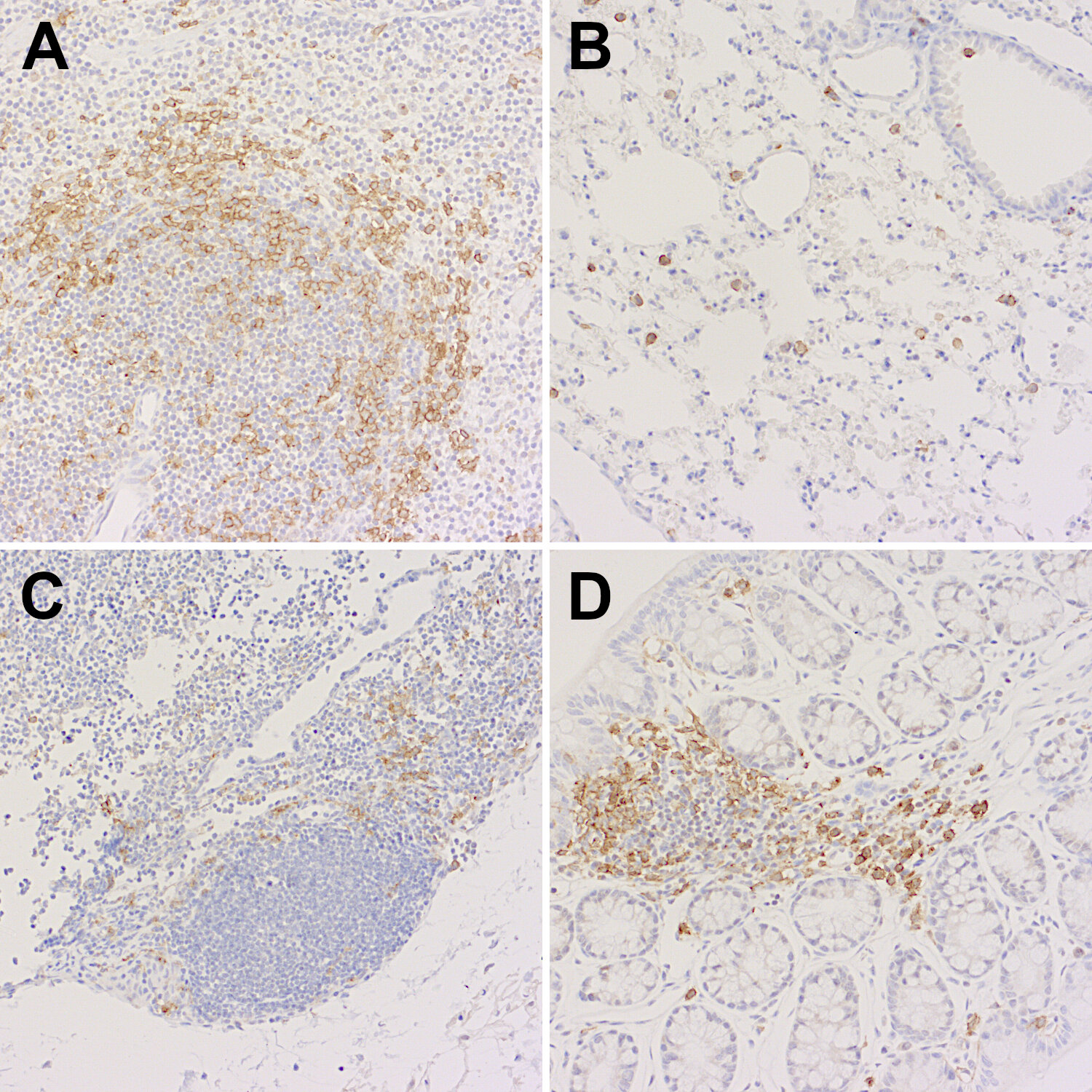 CD11c or Integrin alpha-X (ITGAX) is a heterodimeric glycoprotein consisting of an α- and β-subunit and has seven repeating integrin domains. This transmembrane receptor type I plays a pivotal role in T cell killing and mediates intercellular adhesions during inflammation. Predominat expression levels have been found in dendritic cells, monocytes, macrophages, neutrophils and a small subset of B cells. Under pathological conditions, CD11c is a marker for hairy cell leukemia, acute non-lymphocytic leukemias, and some chronic lymphocytic leukemias.