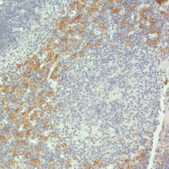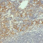 Staining of murine spleen section with biotinylated rat anti-F4/80
