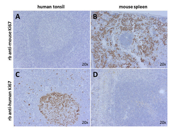 Reacts with: mouse (E9PVX6). No signal: human (P46013), rat (D4A0Y6). Other species not tested yet. |