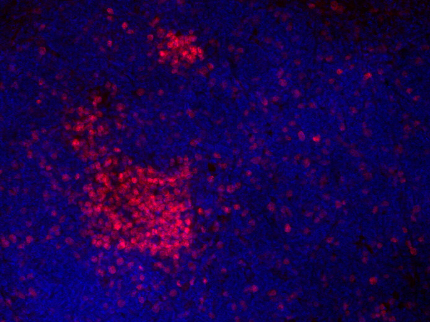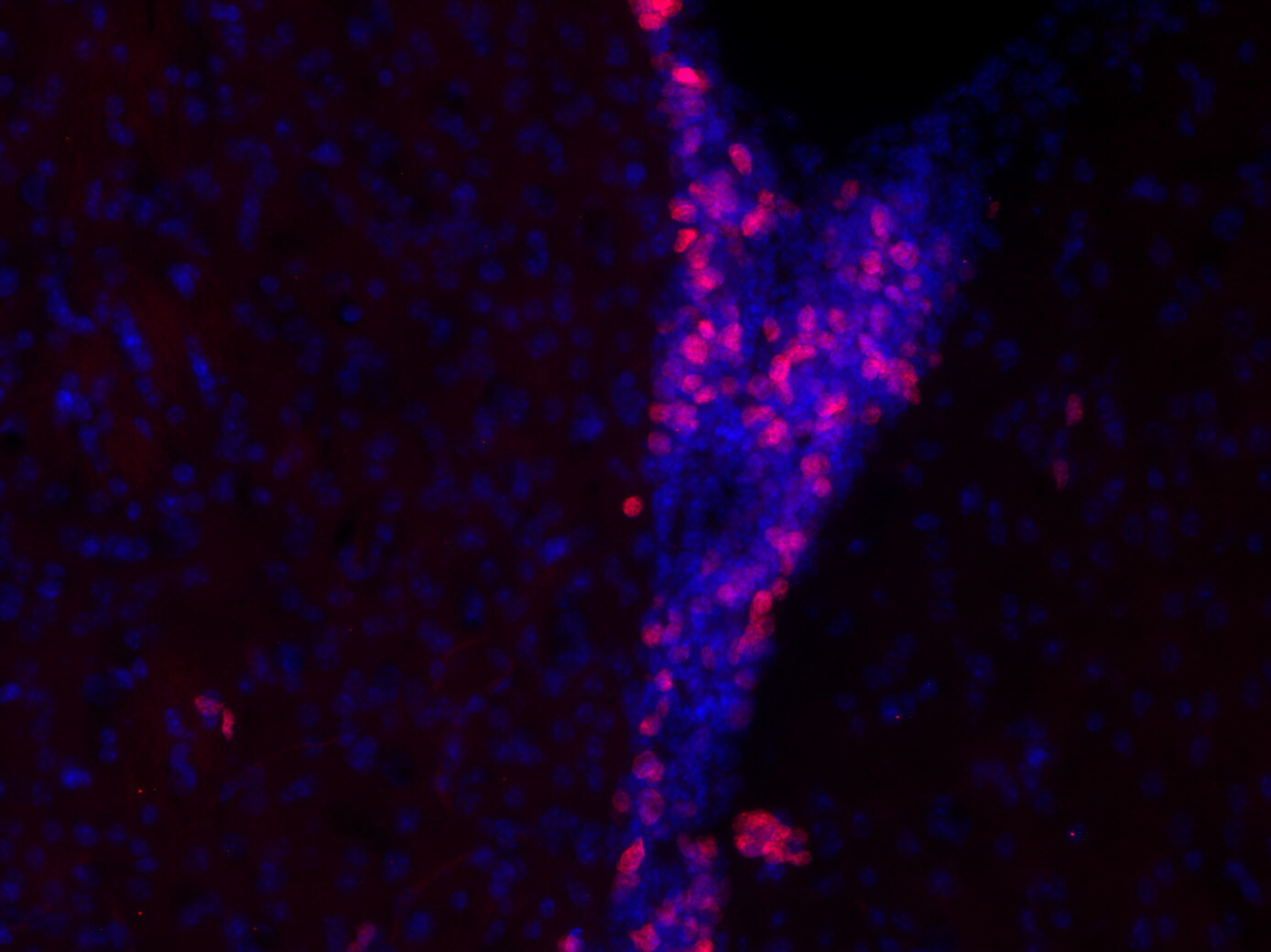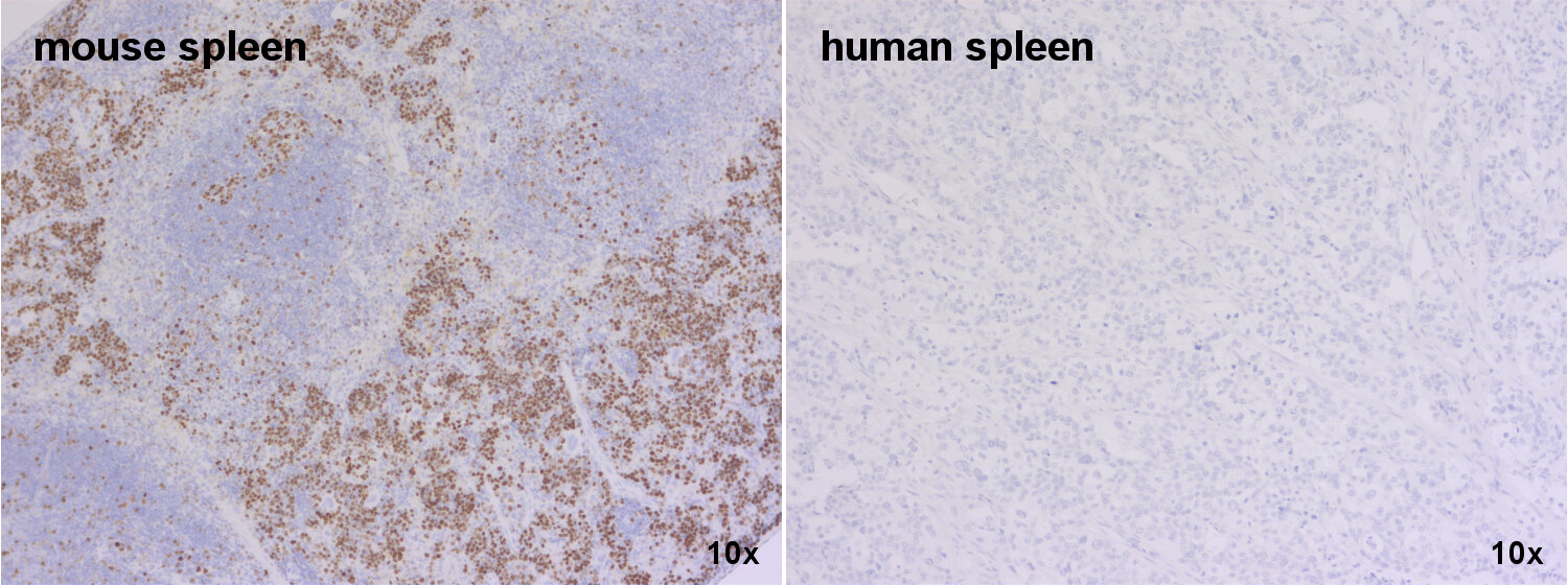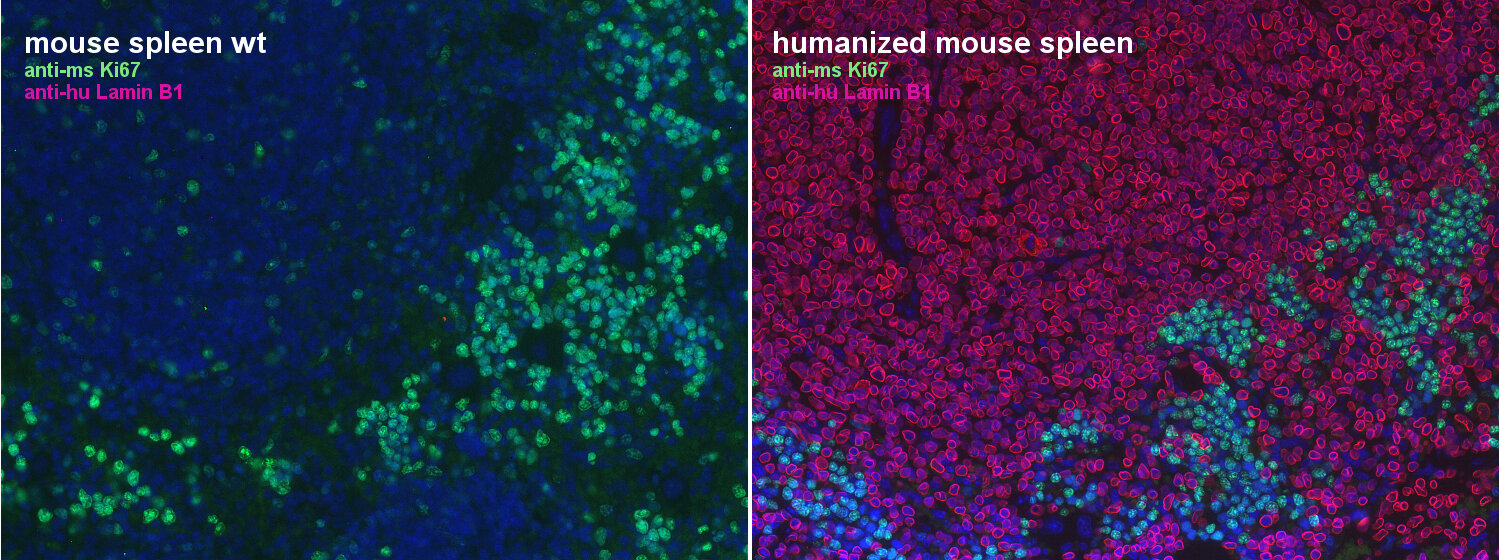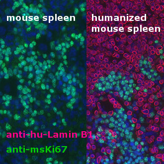 Detection of proliferating murine cells in a humanized mouse spleen using anti-mouse Ki67