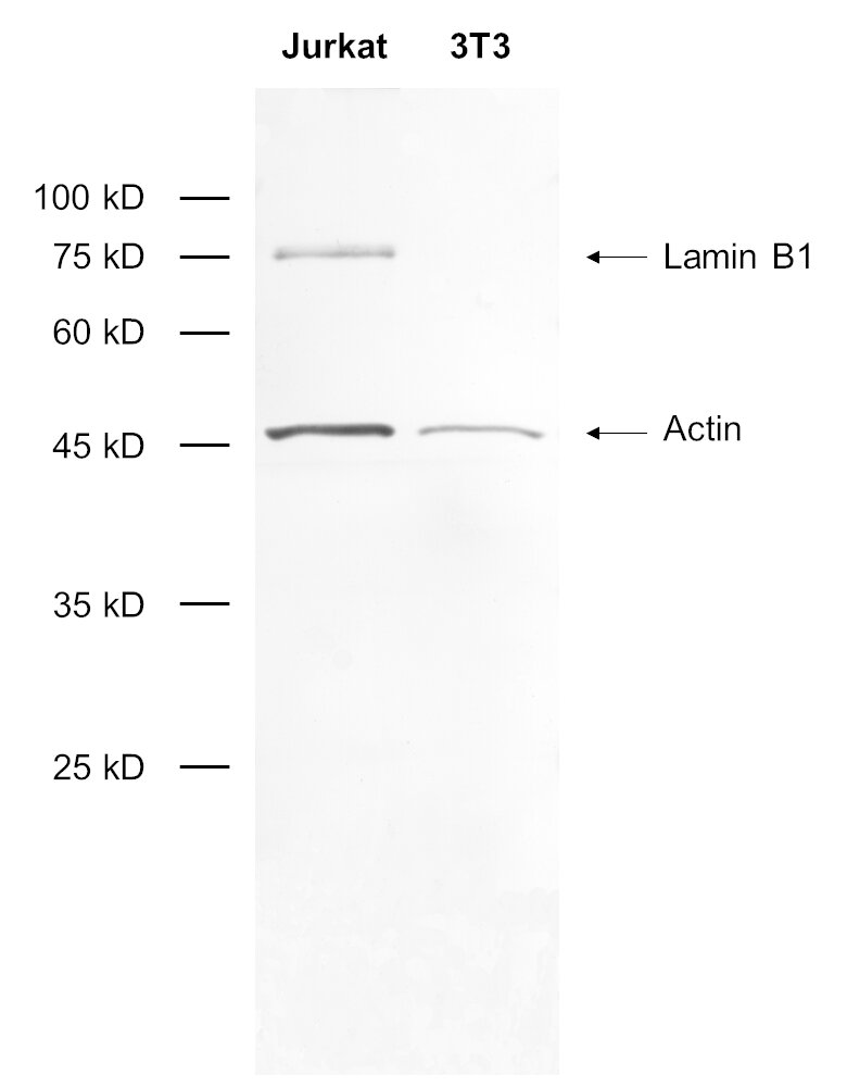 | Immunogen | Synthetic peptide corresponding to residues near the amino terminus of human Lamin B1 (UniProt Id: P20700) |