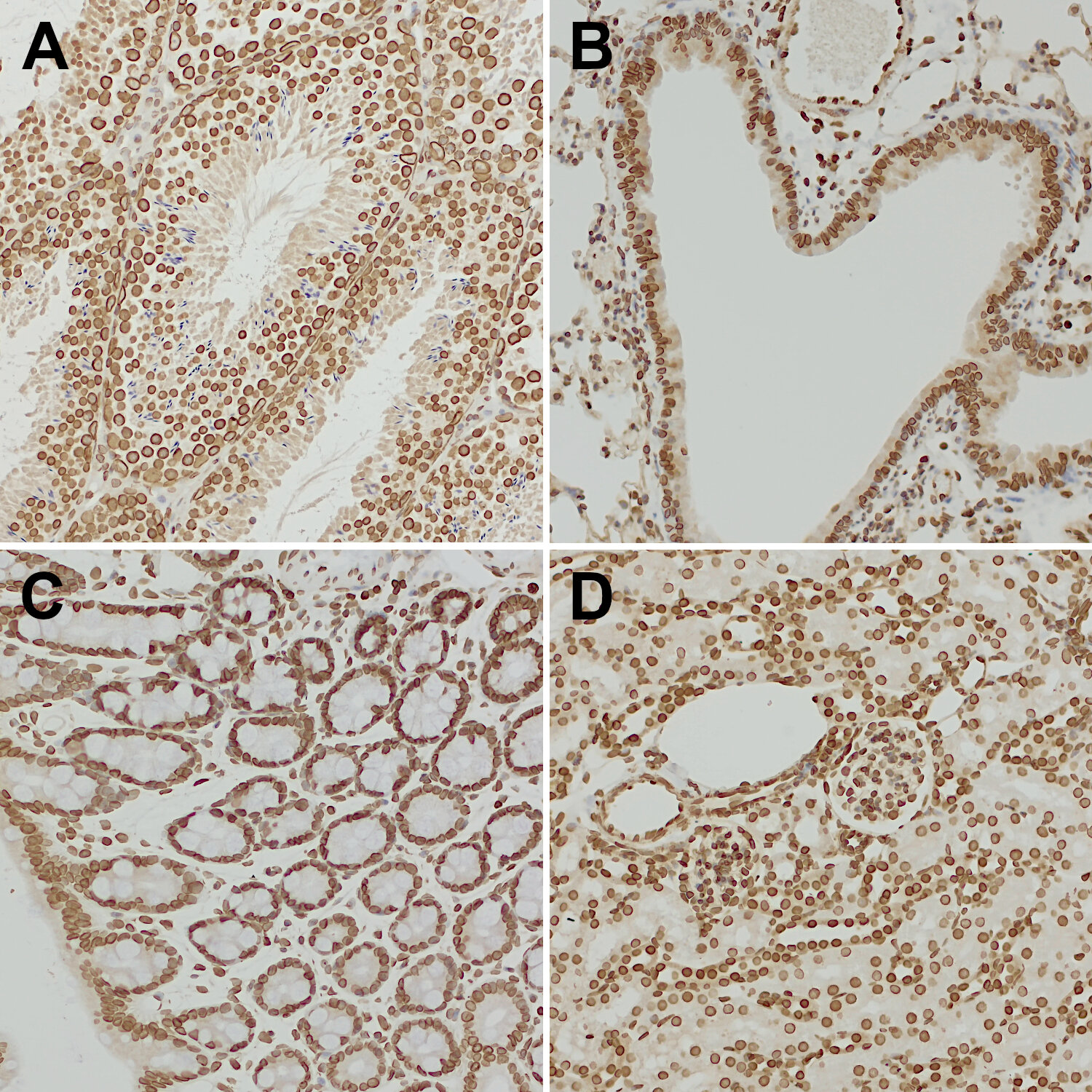 Detection of nuclear Lamin B1 in a formalin fixed paraffin embedded (FFPE) mouse lung section