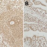 Duplication of the LMNB1 gene causes adult-onset autosomal-dominant leukodystrophy (ADLD), a rare neurological disorder in which overexpression of LMNB1 causes progressive central nervous system demyelination. Improper Lamin B1 expression is often present in tumor cells and decreased levels are observed for example in colon cancer, breast cancer and B-cell malignancies. Lamin B1 loss is also a senescence-associated biomarker and distinguishes senescent from proliferating cells in pre-neoplastic lesions or marks senescent cells in various age-related pathologies.