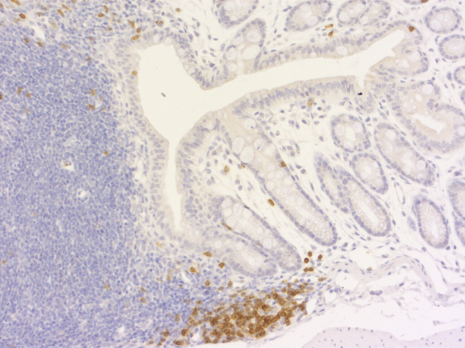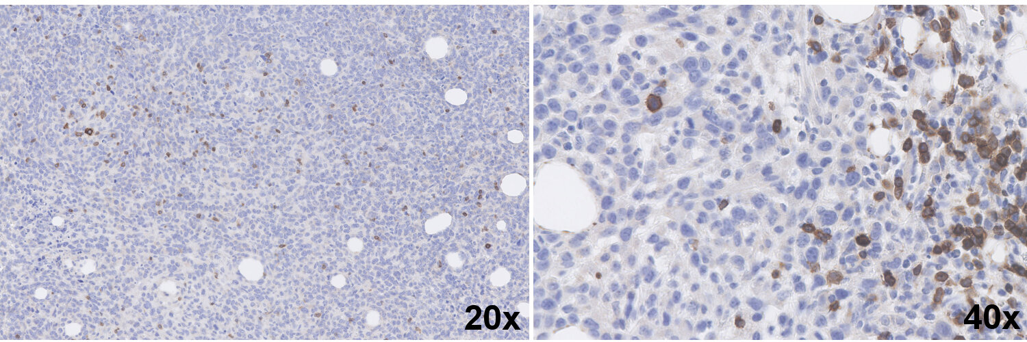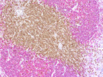 Cluster of differentiation 3 (CD3) is a defining feature of cells belonging to the T cell lineage. It is composed of the four subunits CD3 gamma, CD3 delta, CD3 epsilon (CD3e) and CD3 zeta, that form a multimeric protein complex. This complex associates with the T cell receptor (TCR) and serves as a T cell co-receptor. The CD3 molecules contain immunoreceptor tyrosine-based activation motifs (ITAMs) that serve as the nucleating point for the intracellular signal transduction machinery upon TCR engagement. TCR/CD3 signaling is central to the initiation of antigen-specific T cell responses to pathogens and vaccines, as well as transplanted tissues, tumors, and autoantigens. CD3 is initially expressed in the cytoplasm of pro-thymocytes. During T cell maturation the expression of CD3 migrates to the cell-membrane. The specific appearance at all stages of T cell development make CD3 a useful immunohistochemical marker for T cells in tissue sections. In the clinical setting, CD3 is a relevant marker for the classification of malignant lymphomas and leukemias as the antigen remains present in almost all T-cell lymphomas and leukemias. It can also be used to detect T cells in celiac disease, lymphocytic and collagenous colitis.