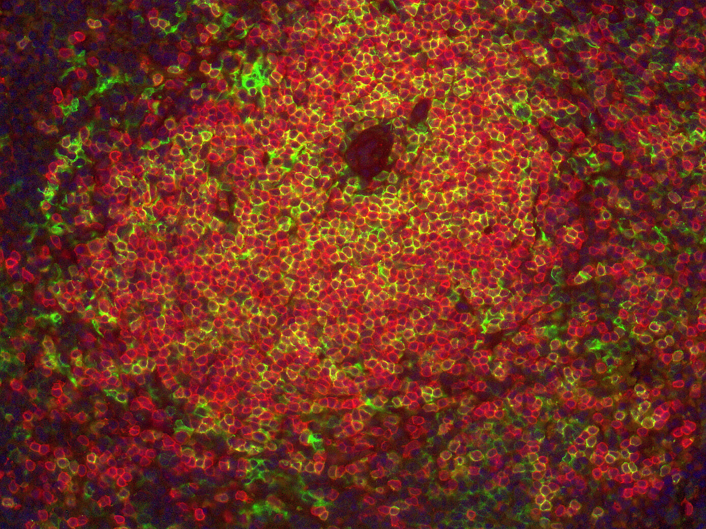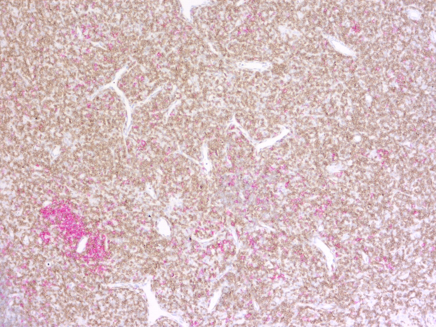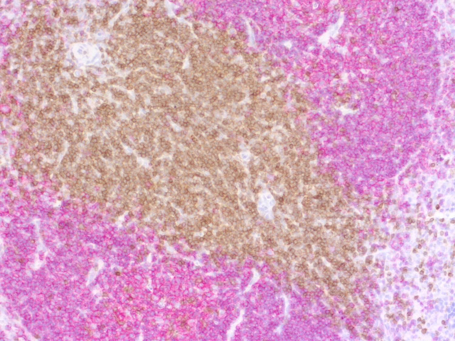 Double-staining of CD3e positive T-cells and CD19 positive B-cells in FFPE mouse spleen section