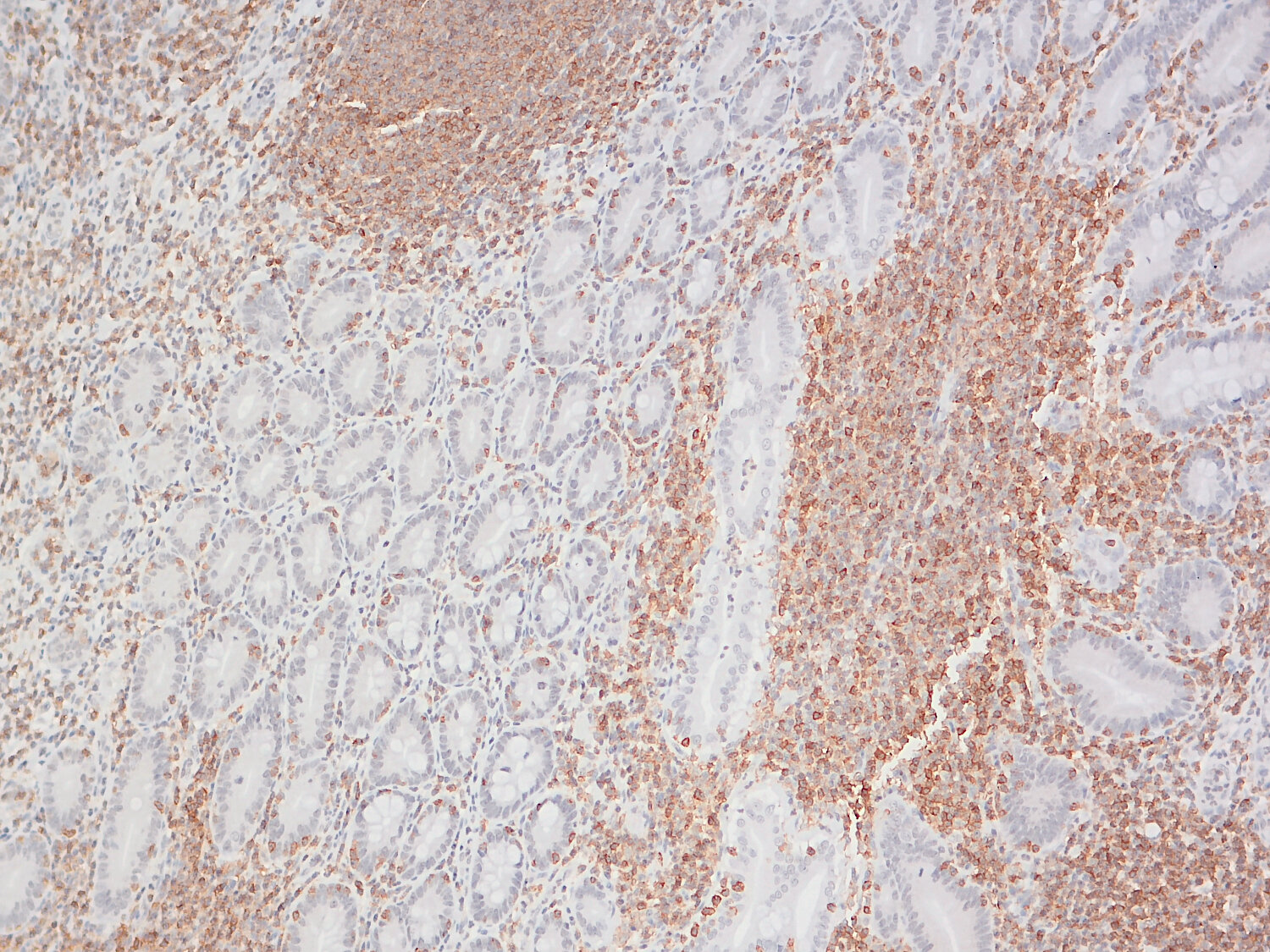 Detection of lymphocytes in human small intestine with rat monoclonal anti-human CD45.