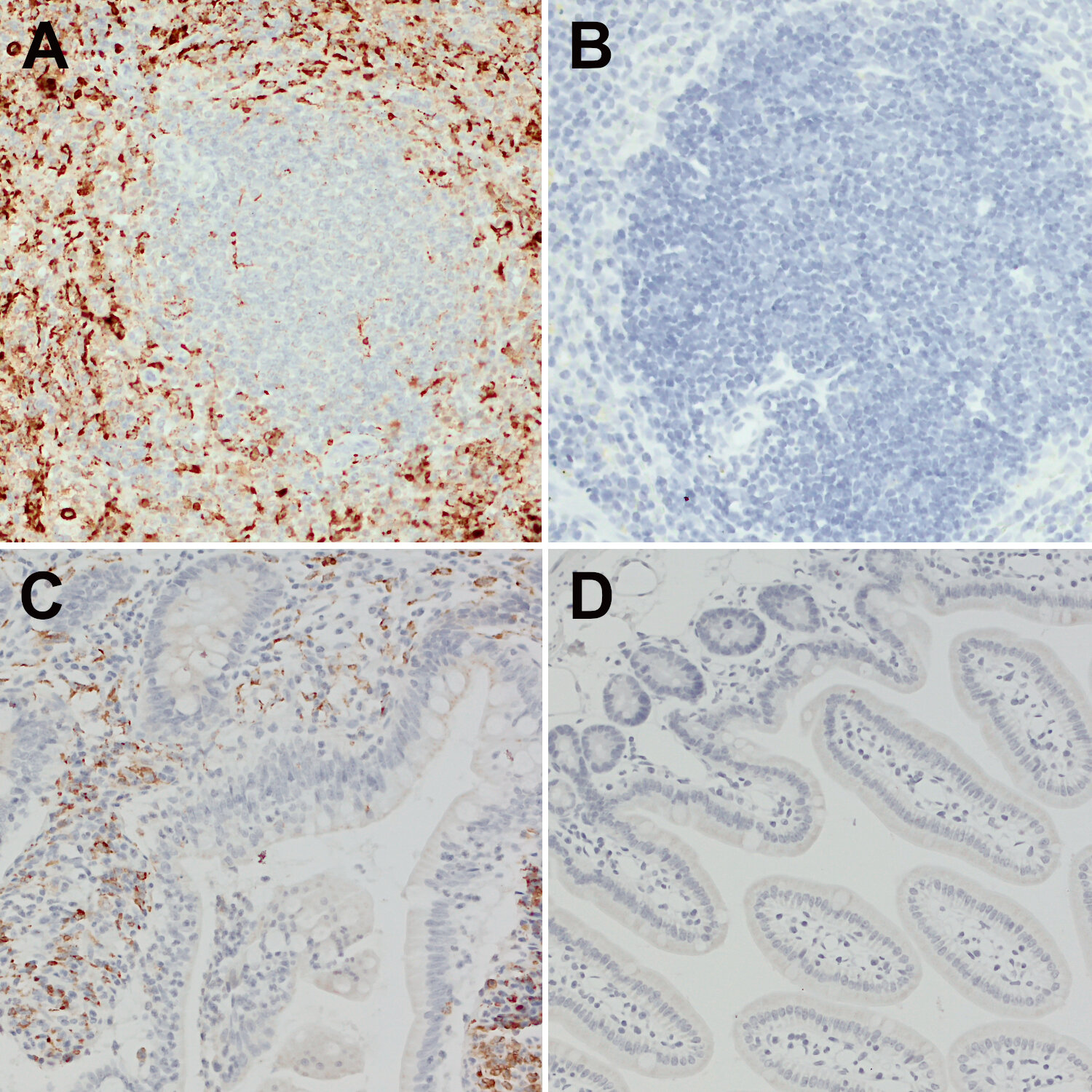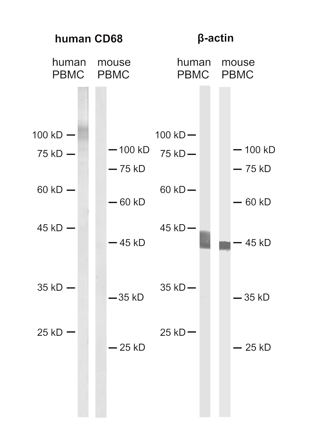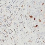 CD68, also called Lamp-4 in humans or macrosialin in mice, is a highly glycosylated type I transmembrane protein that belongs to the lysosome associated membrane protein (LAMP) family (1). CD68 expression is increased in cells associated with elevated phagocytic and degradative activity. High CD68 expression is detected in cells of the mononuclear phagocyte lineage including macrophages, osteoclasts, and myeloid dendritic cells (2). CD68 is a marker of activated microglia and only expressed at low levels in resting microglia (3). Staining for CD68 is predominantly intracellular, only 10 -15% of it is found on the cell surface. In oncology research, CD68 is the major biomarker for quantification of tumor-associated macrophages (TAMs) (4). High infiltration of CD68+ macrophages is an independent prognostic factor for overall survival in several tumor entities (5).