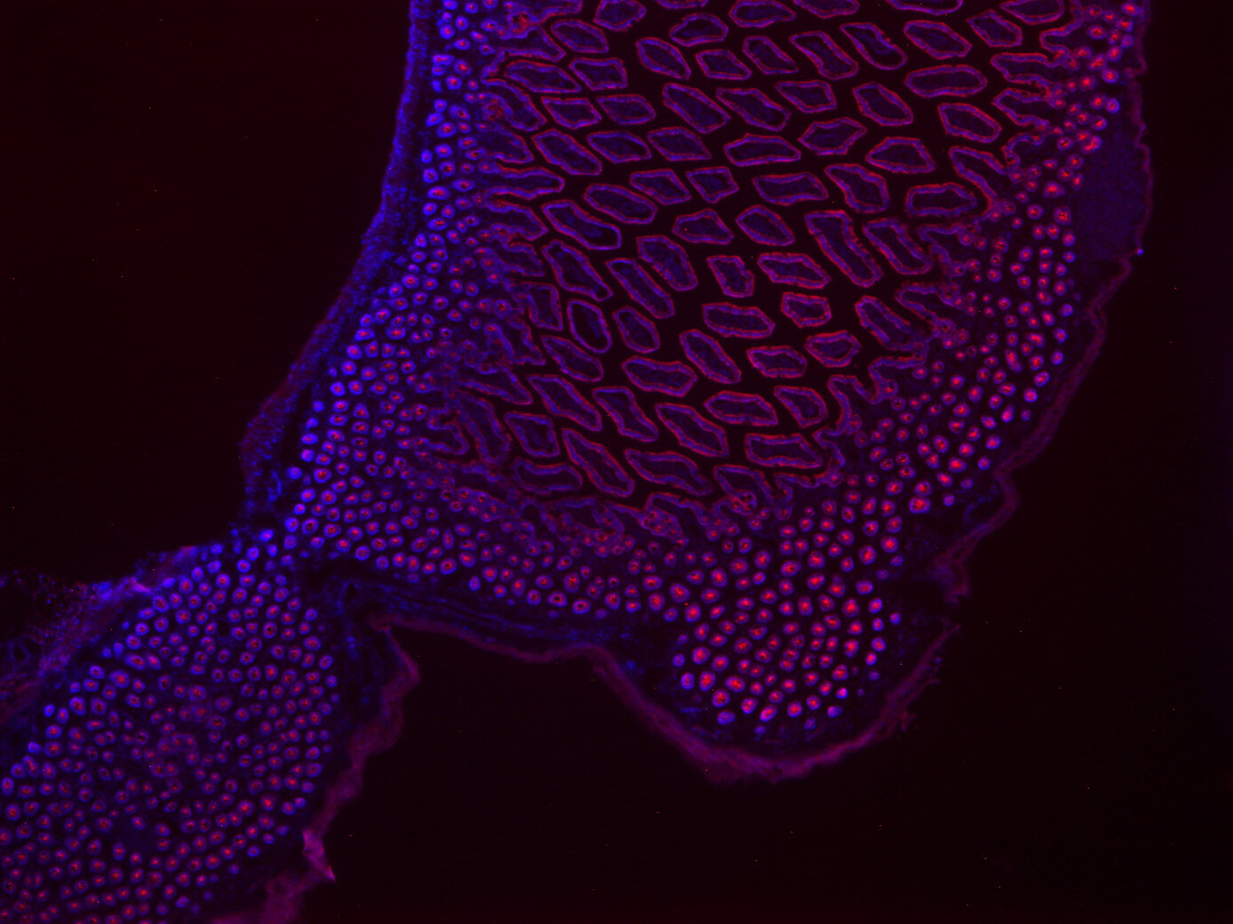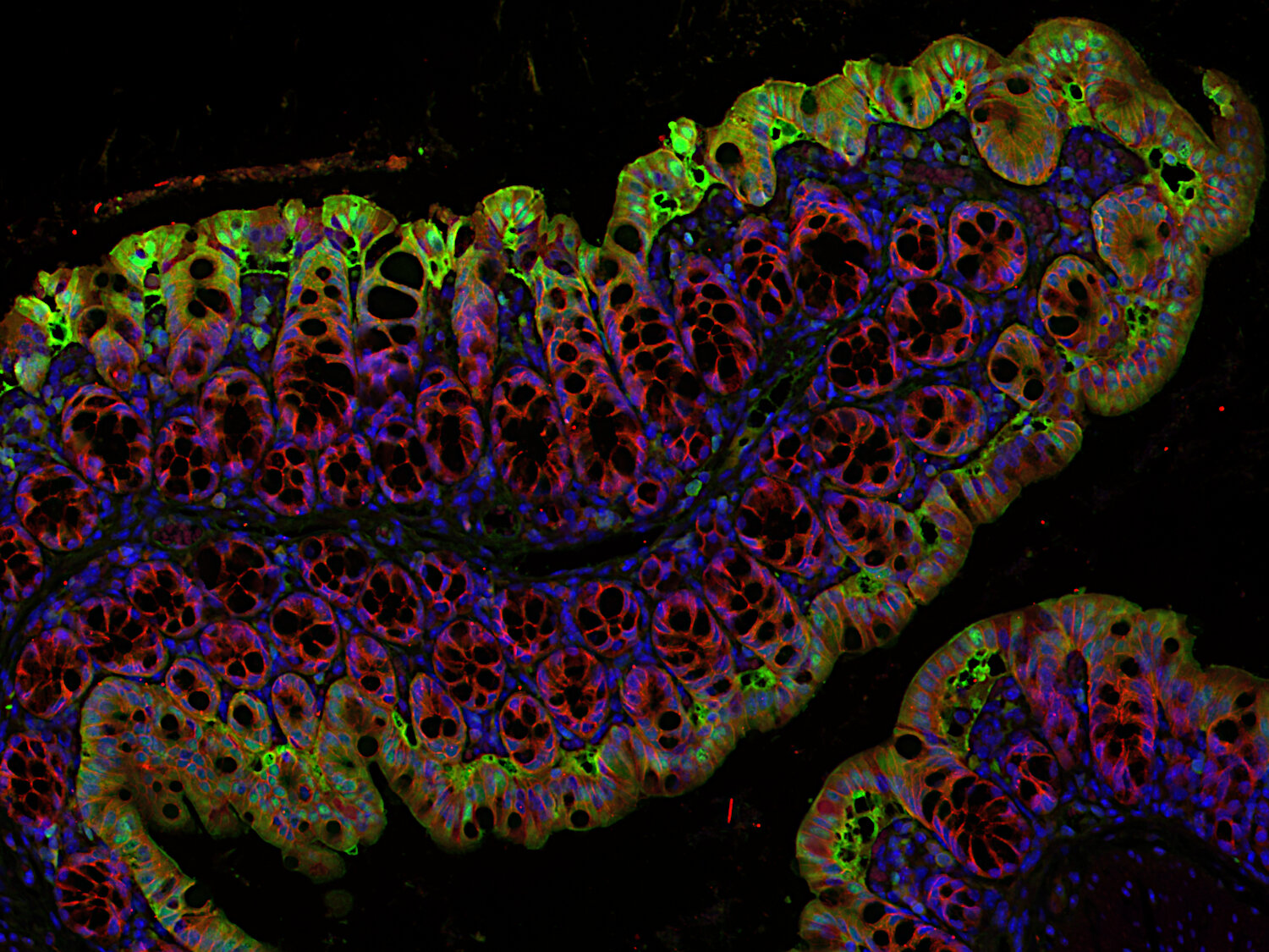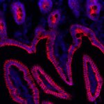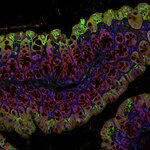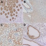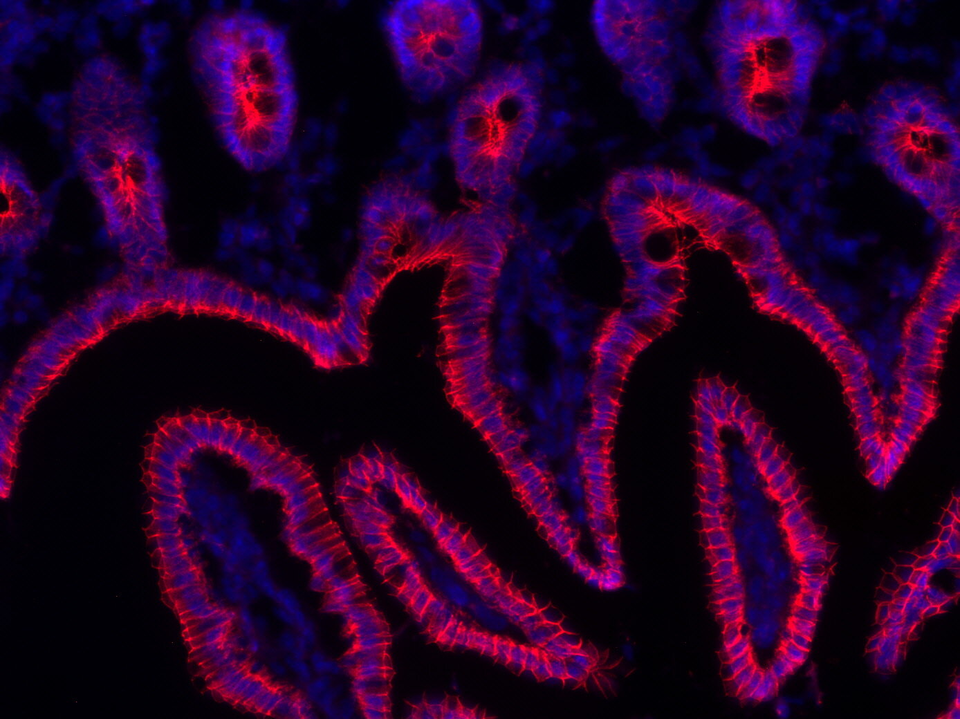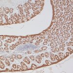Indirect immunostaining of human and mouse duodenum sections using mouse-E-cadherin specific antibody.