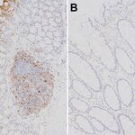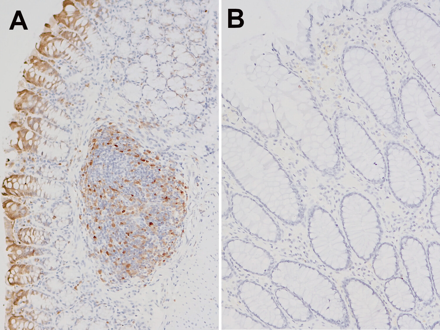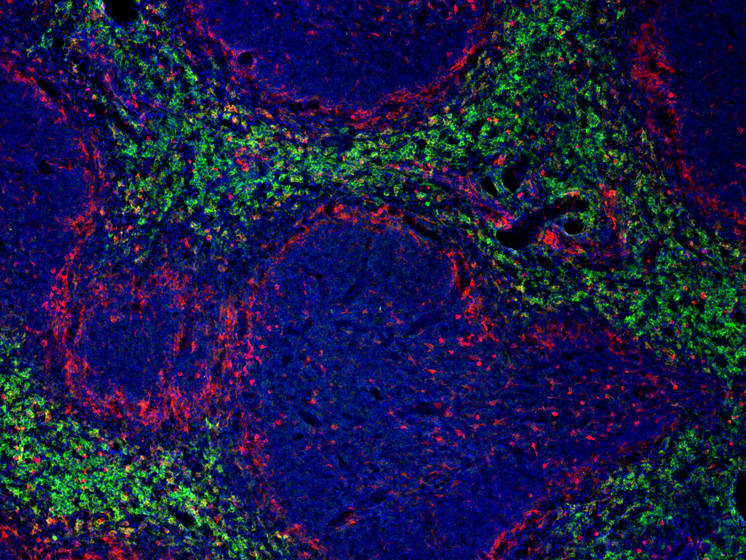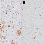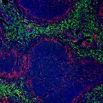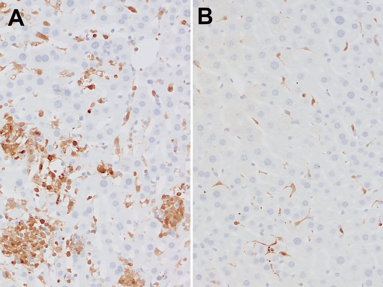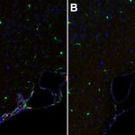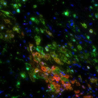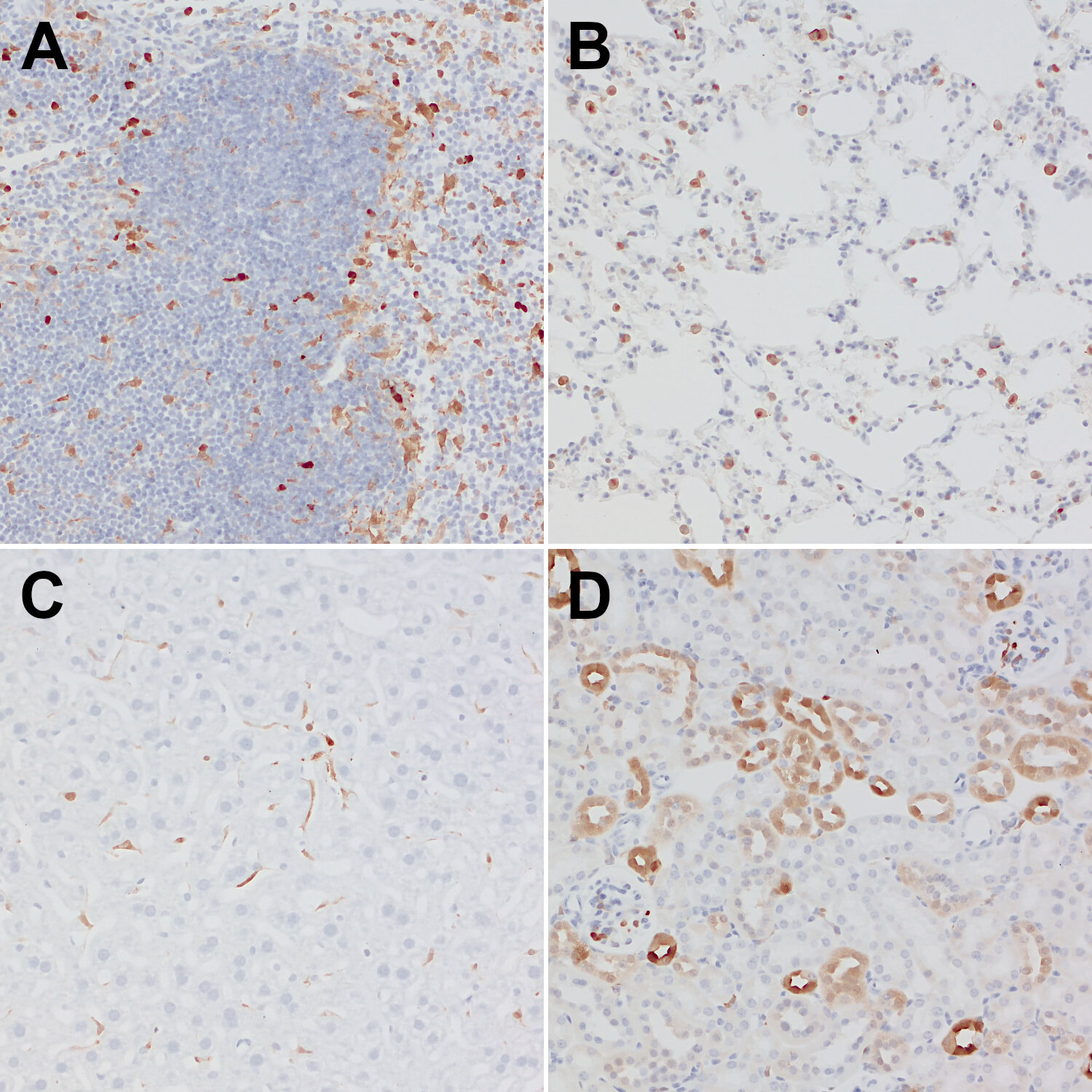 Galectin-3 (Gal-3, Mac-2) is a β-galactoside binding protein that is predominantly located in the cytoplasm and shuttles into the nucleus. In addition, it is secreted to the cell surface and into biological fluids. Depending on its localization, it exerts pleiotropic biological functions like cell growth, cell differentiation, inflammation, fibrogenesis, migration, apoptosis, and host defense (1). It is also involved in cancer pathogenesis, proliferation, and spreading of metastasis (2). Galectin-3 is highly expressed in the covering epithelia of the digestive tract and the urinary system (3) and plays important roles in the organization of renal and intestinal cells. Furthermore, Galectin-3 has been identified in a variety of other cell types including fibroblasts, keratinocytes, granulocytes, dendritic cells, and macrophages (2). Galectin-3 is expressed by certain tissue-resident macrophages such as Kupffer cells in the liver, red pulp macrophages in the spleen, and alveolar macrophages in the lung (3). In the brain, Galectin-3 is abundant in activated microglia but not expressed in resting cells. Following brain injury, Galectin-3 triggers anti-inflammatory properties of microglia (4). In Alzheimer’s disease, Gal-3 expression is strictly associated with microglial cell activation around Aβ plaques. In stroke, Gal-3 was found to be expressed primarily in proinflammatory microglial cells (5).