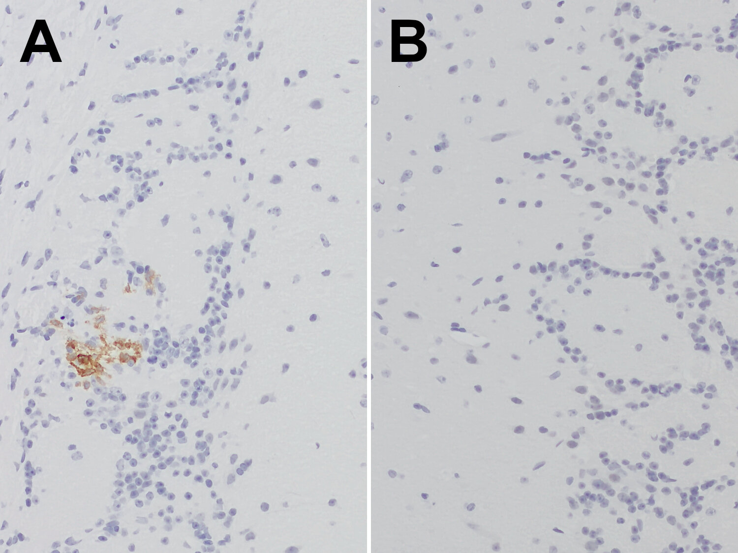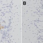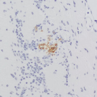 iNOS positive microglia cells in the olfactory bulb of a SARS-CoV-2 infected K18-hACE2 transgenic mouse