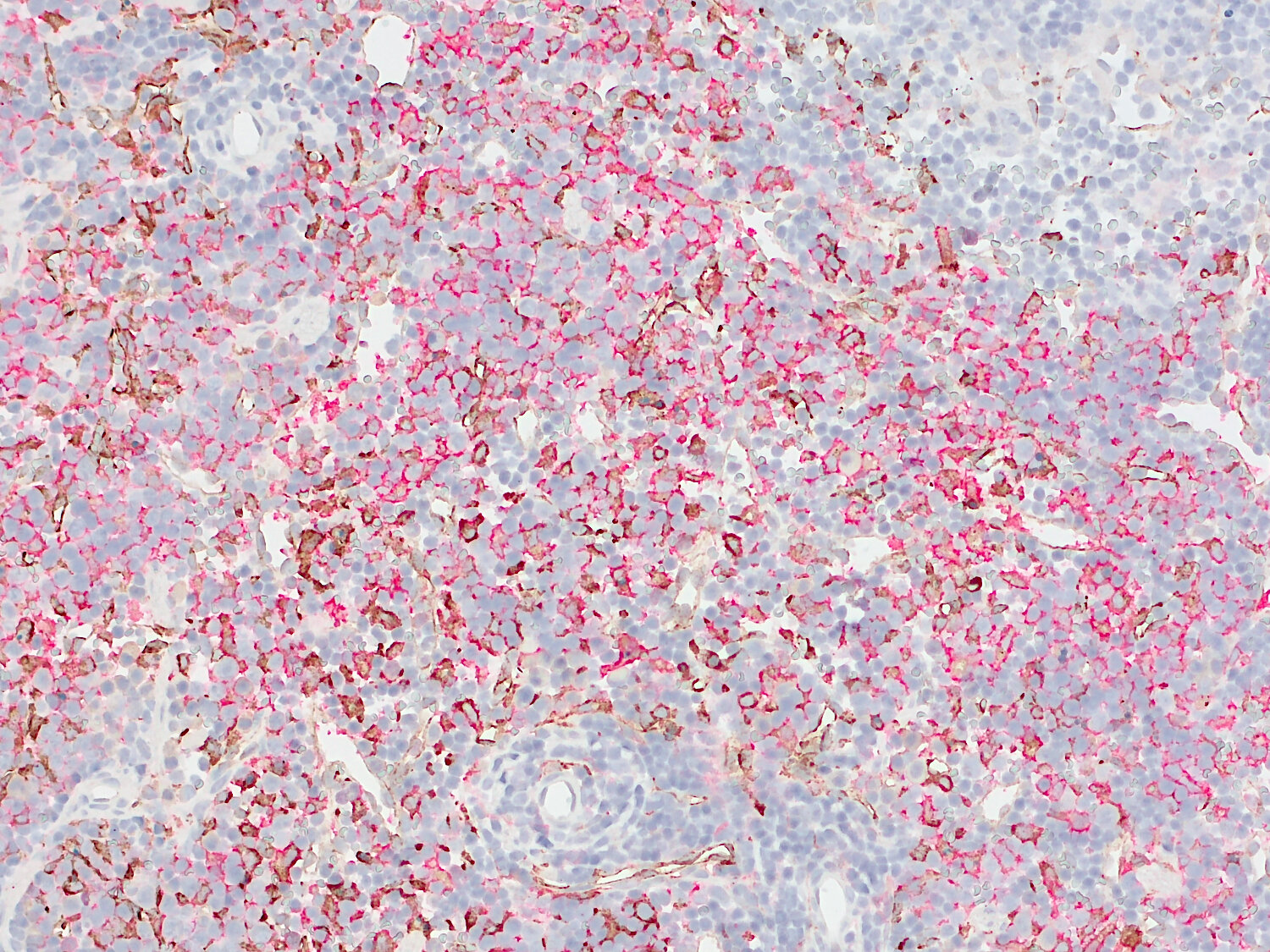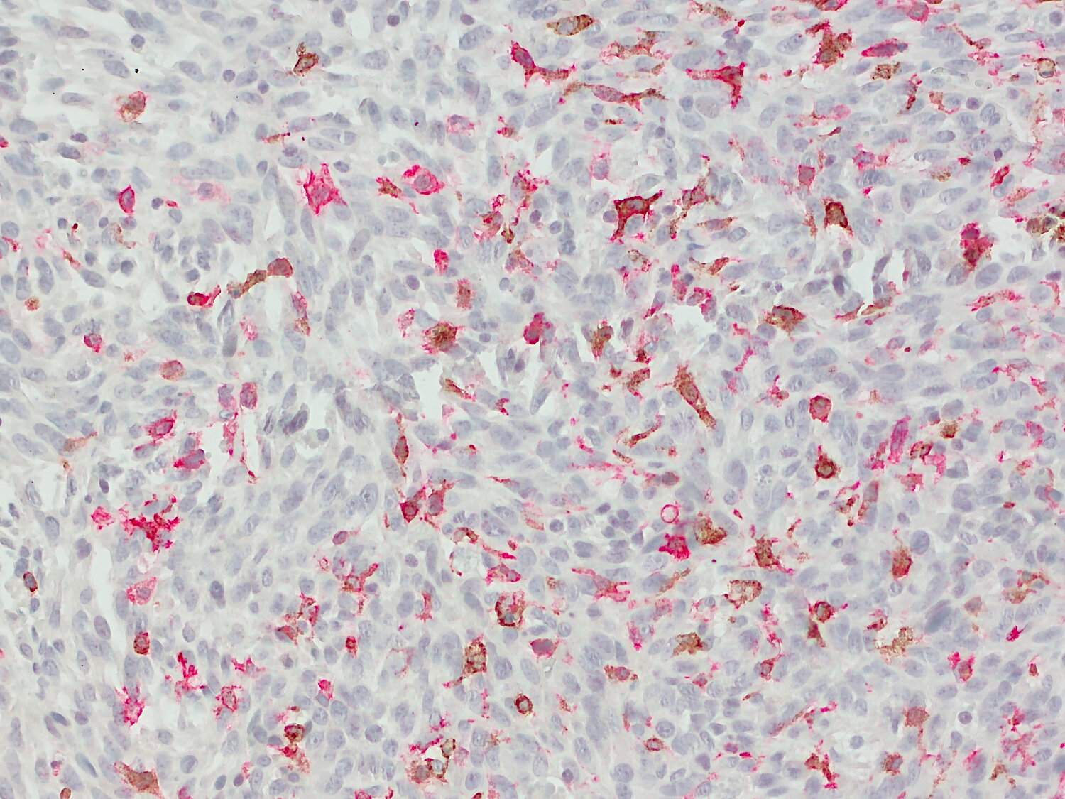 Tumor-Associated mouse macrophages express CD206 (brown) and F4/80 (red)