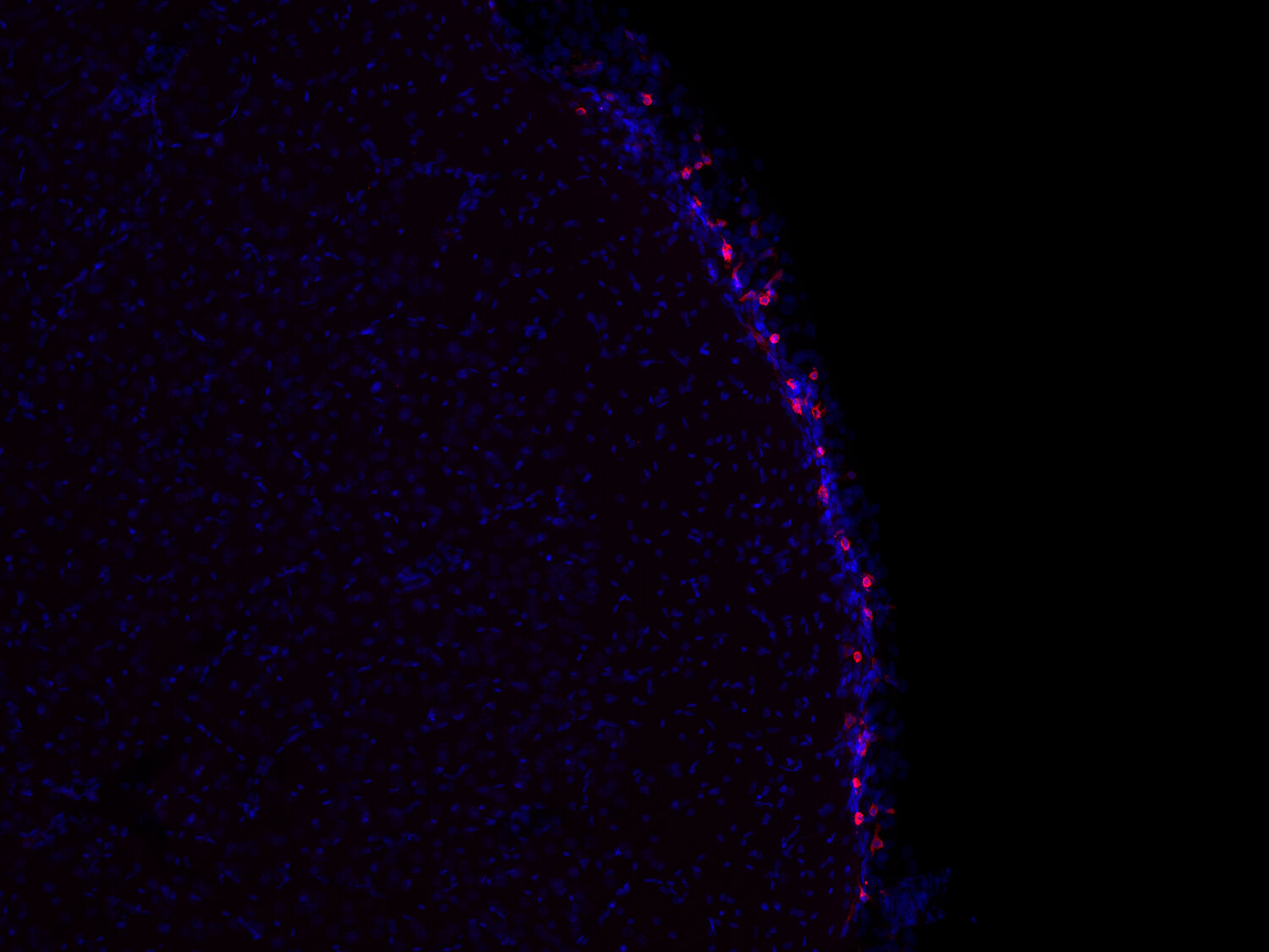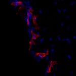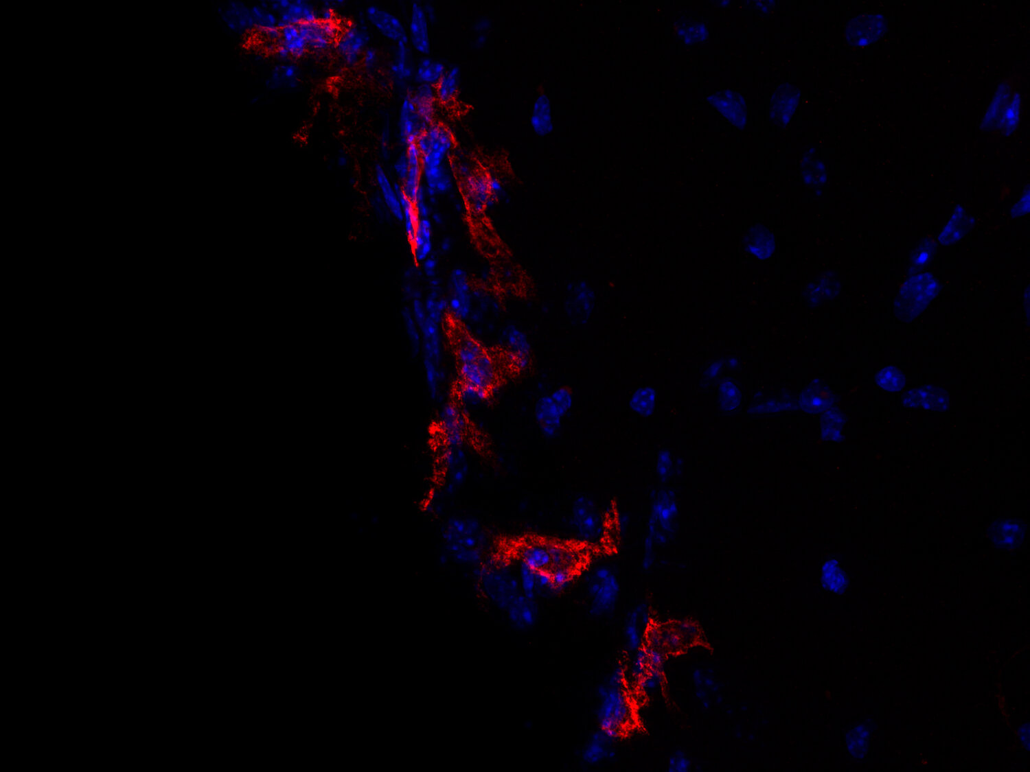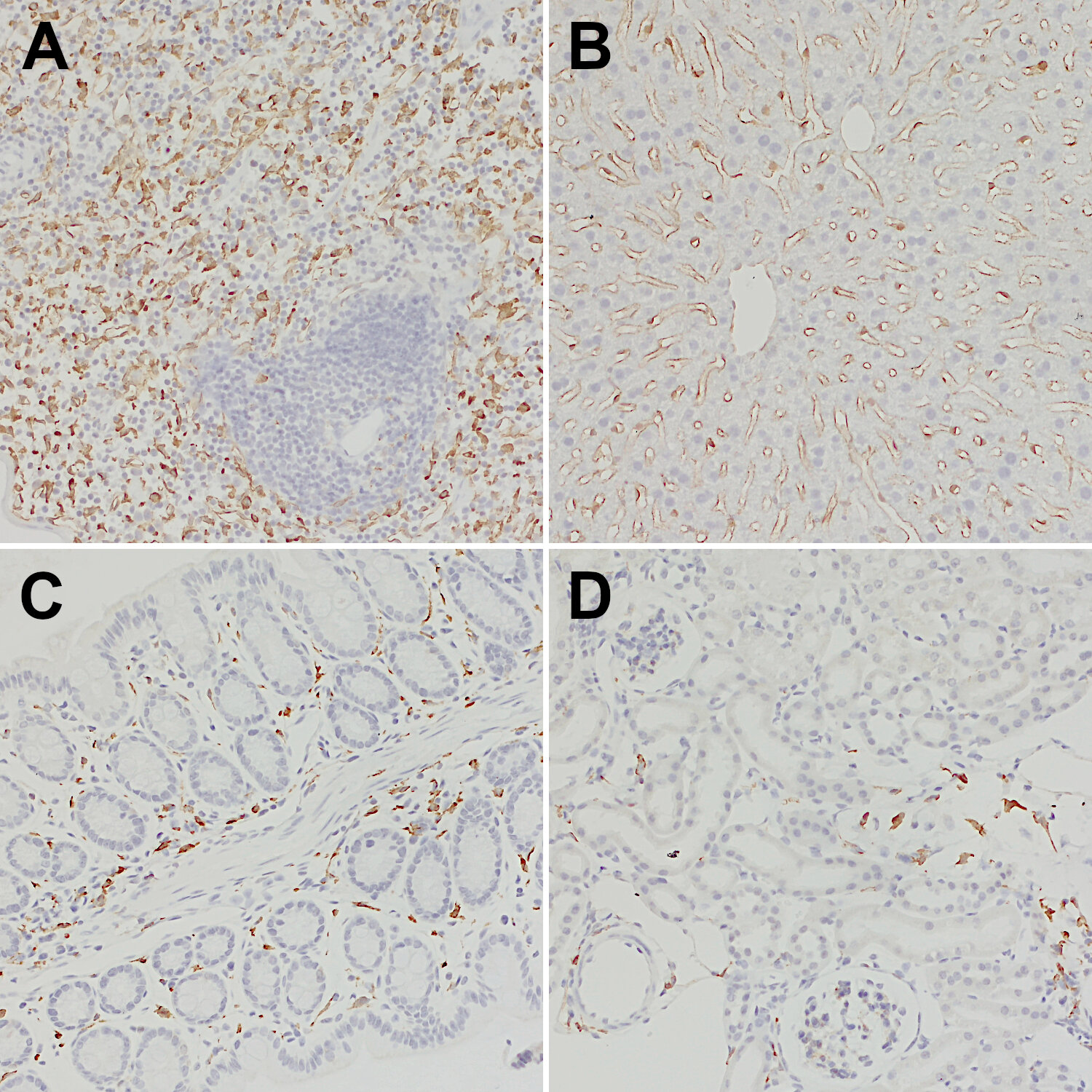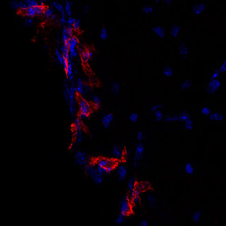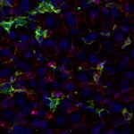 CD206, also known as macrophage mannose receptor type C (MMR or MRC1), is a member of the C-type lectin (CLEC) family. CD206 is expressed by subpopulations of macrophages, immature dendritic cells, and liver sinusoidal endothelial cells. Its expression level is differentially regulated by cytokines (e.g., IL-10, IL-4, IL-13, and IFNγ), prostaglandins, LPS, and the transcription factor PPAR-γ (1). CD206 functions in endocytosis and phagocytosis (1) and high expression is found both on pro- and antitumor TAMs (tumor-associated macrophages) (2). In the brain, border-associated macrophages (BAMs) can be discriminated from microglia by the expression of CD206 and CD169 (3).