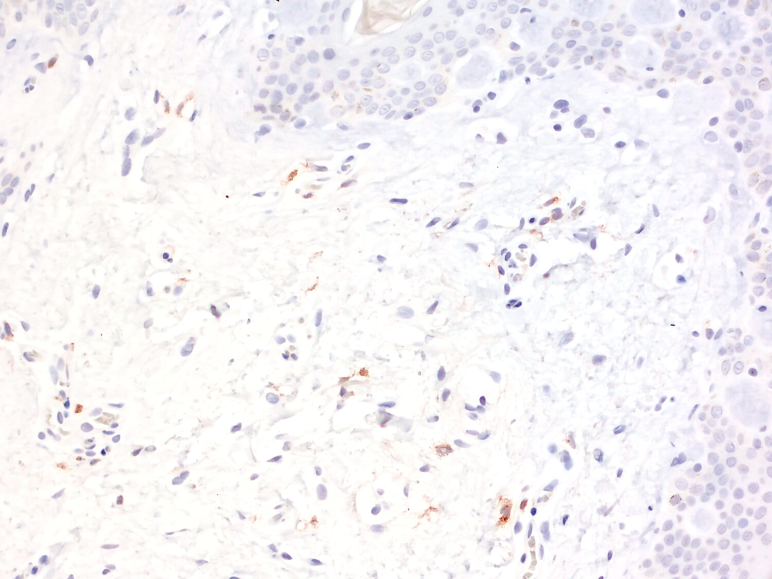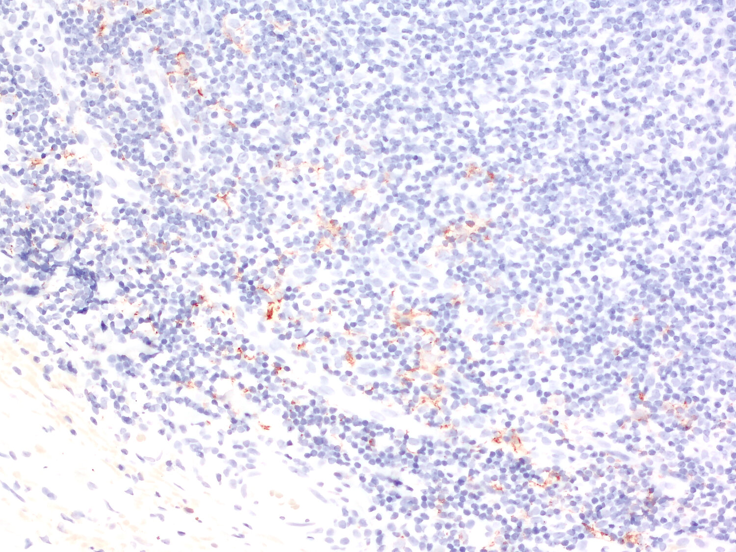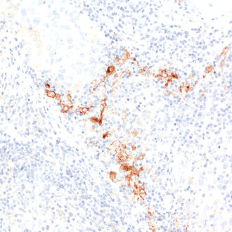 Transmembrane staining of CD169-positive macrophages in a human lymph node