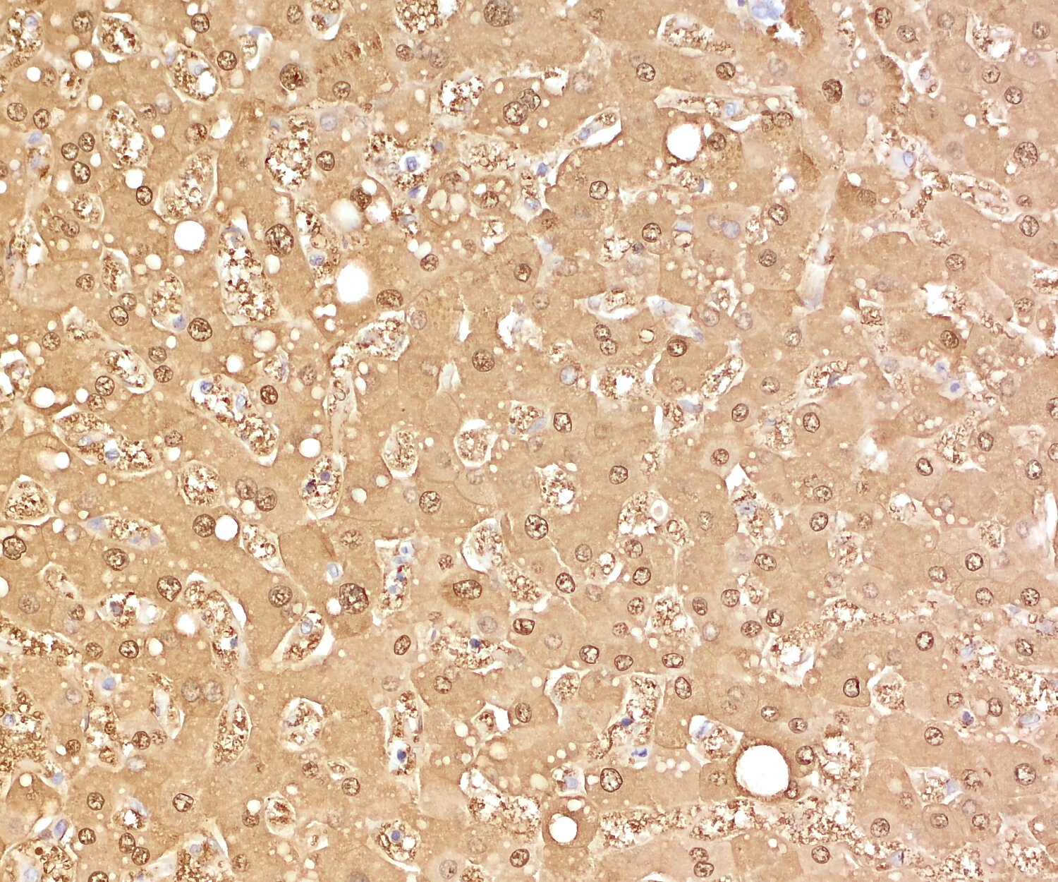 Staining of human liver section with rabbit anti-human Arg1