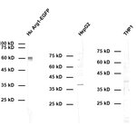 50 µg specific antibody, lyophilized. Affinity purified with the immunogen. Albumin and azide were added for stabilization. For reconstitution add 50 µl H2O to get a 1mg/ml solution in PBS. Then aliquot and store at -20°C to -80°C until use. Antibodies should be stored at +4°C when still lyophilized. Do not freeze! |